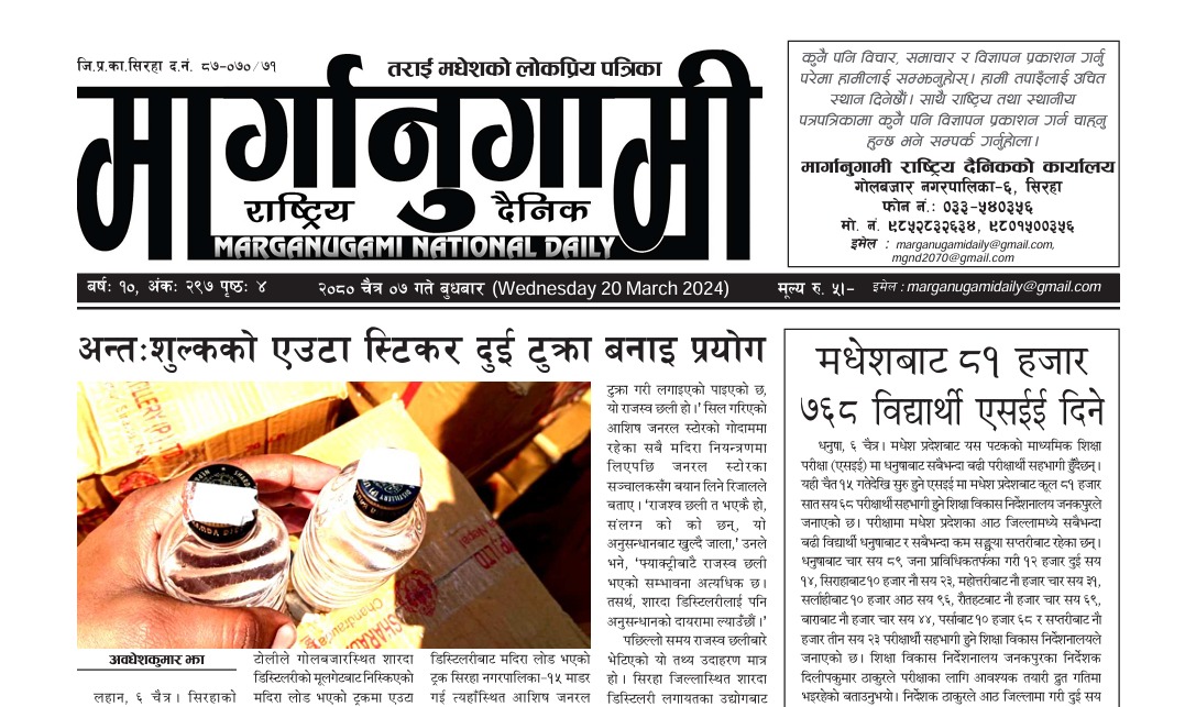 २०८० चैत्र ०६ गते मंगलबार (Tuesday 19 March 2024)