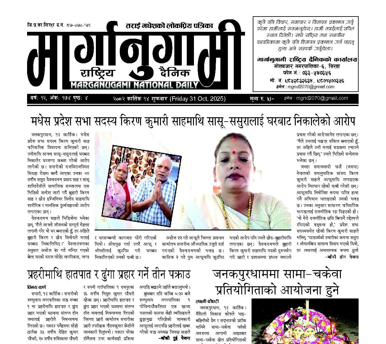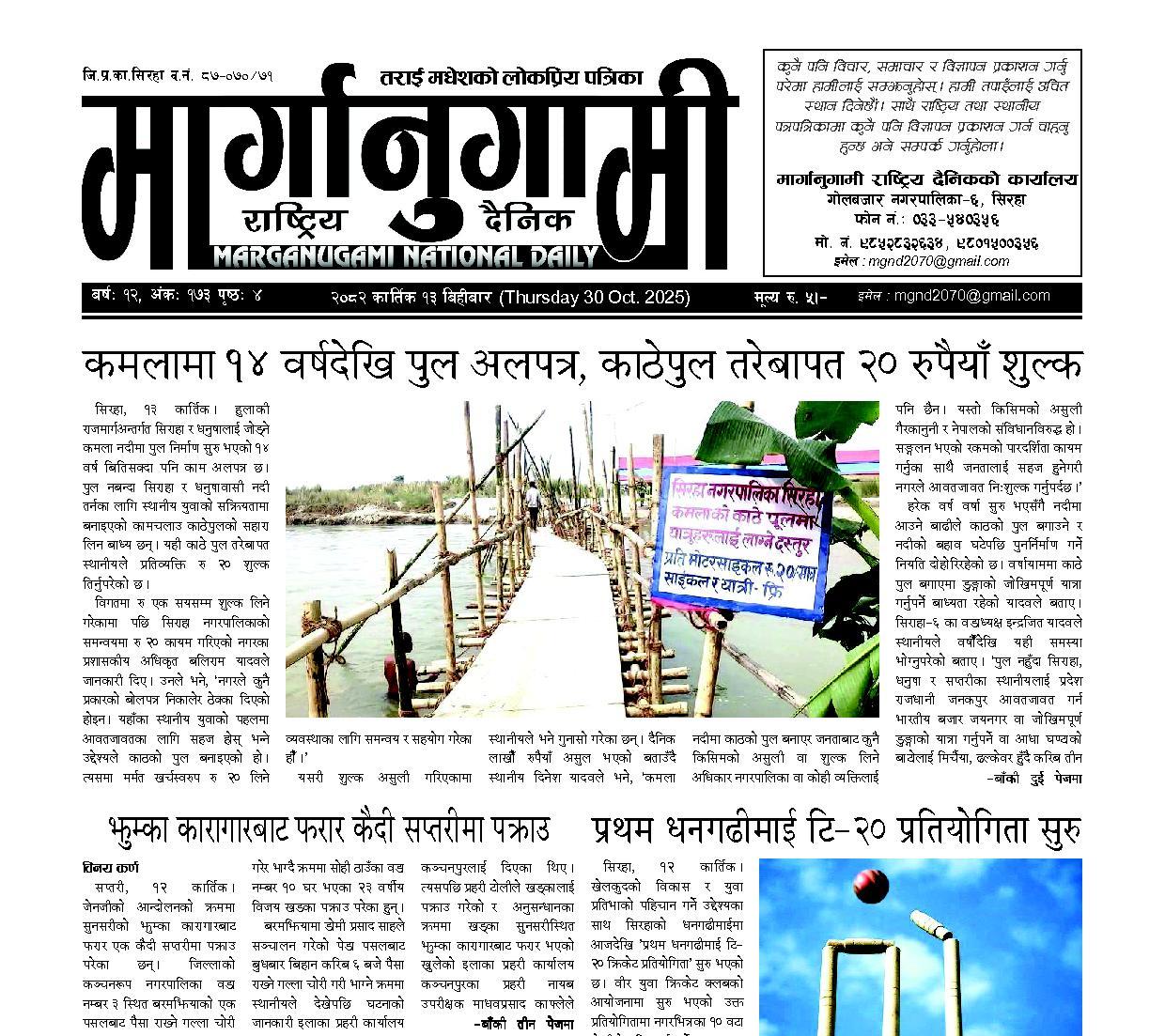२०८२ कार्तिक १३ बिहीबार (Thursday 30 Oct. 2025)