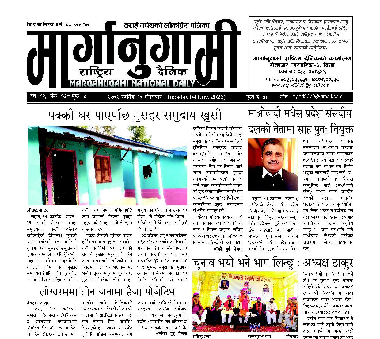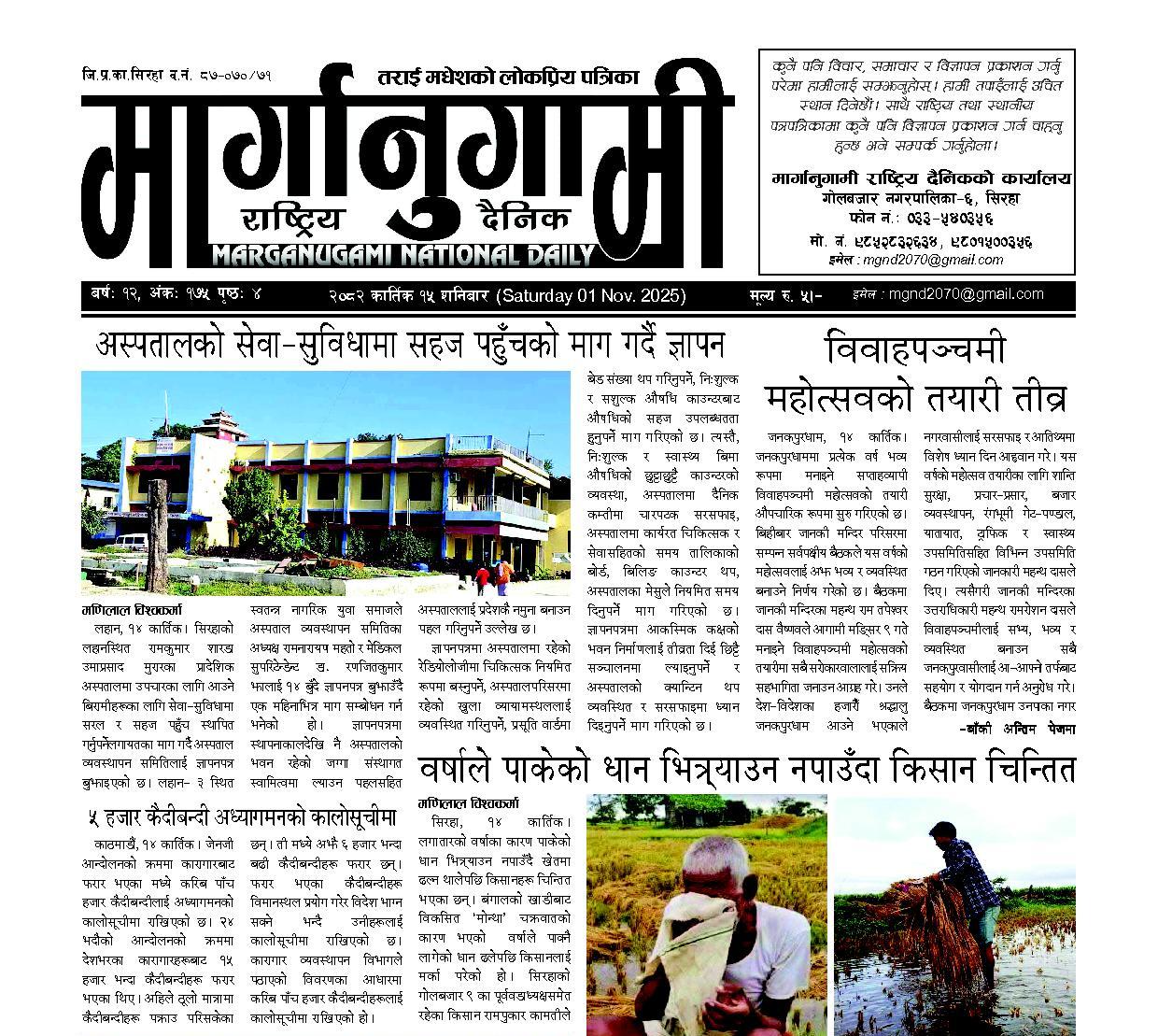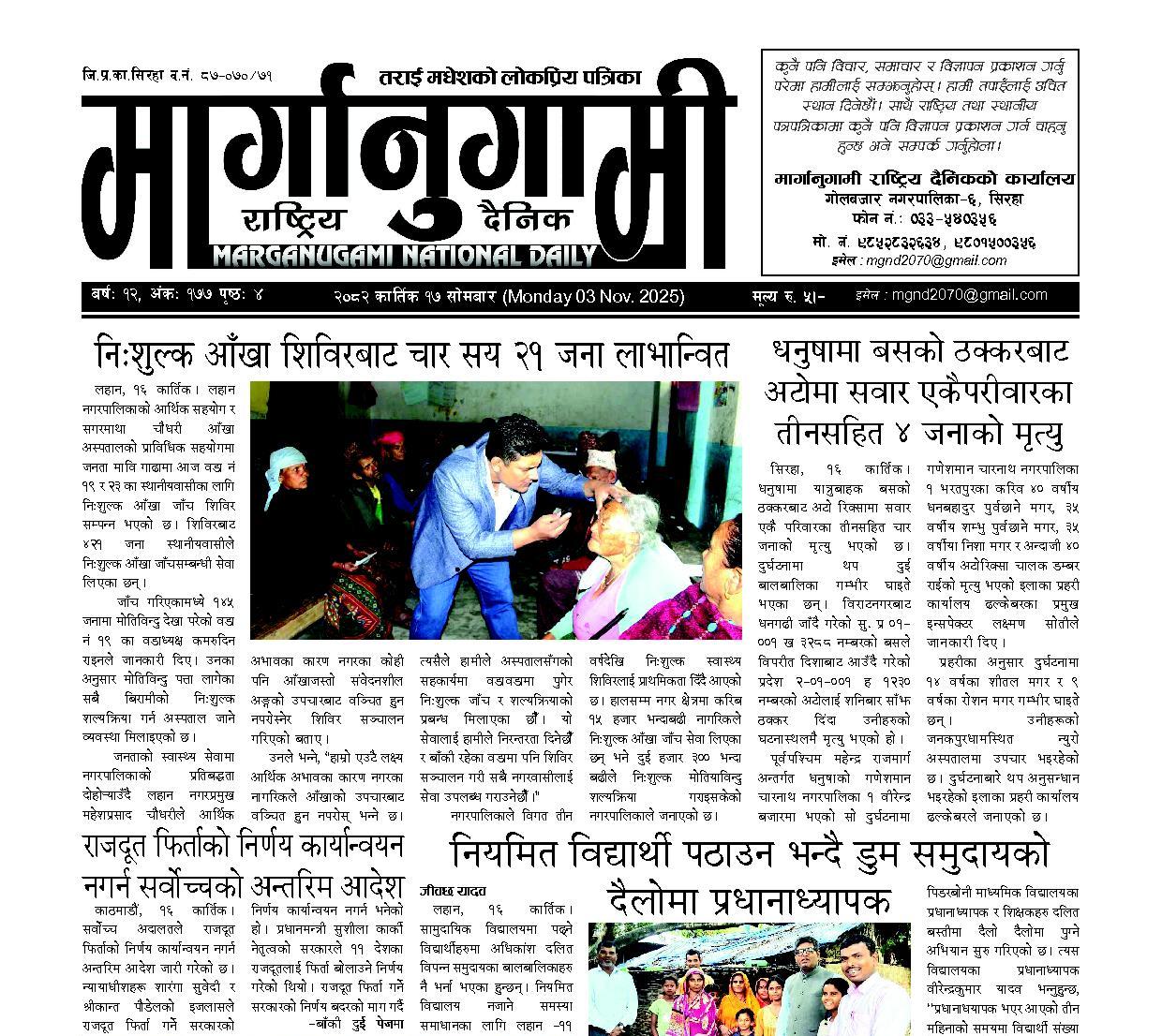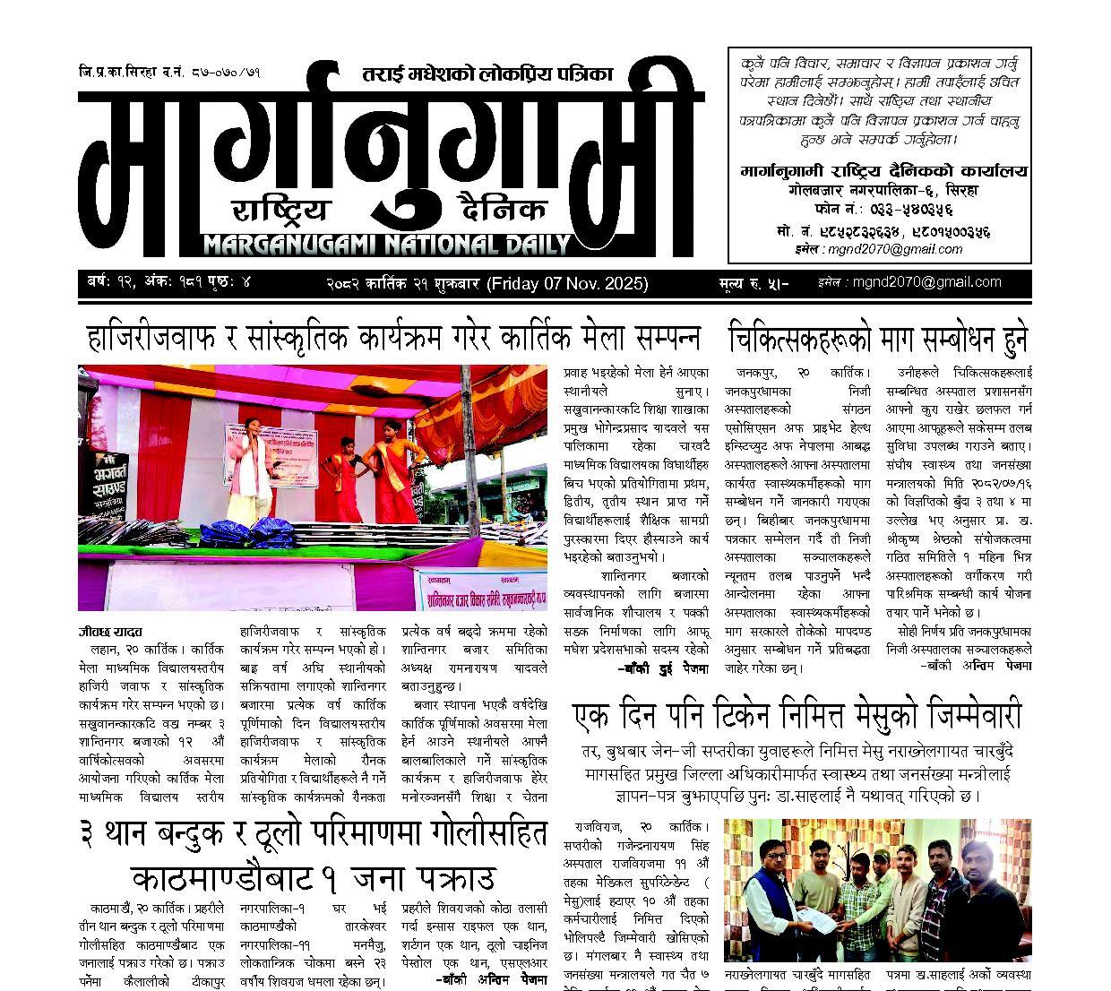 २०८२ कार्तिक १८ मंगलबार (Tuesday 04 Nov. 2025)