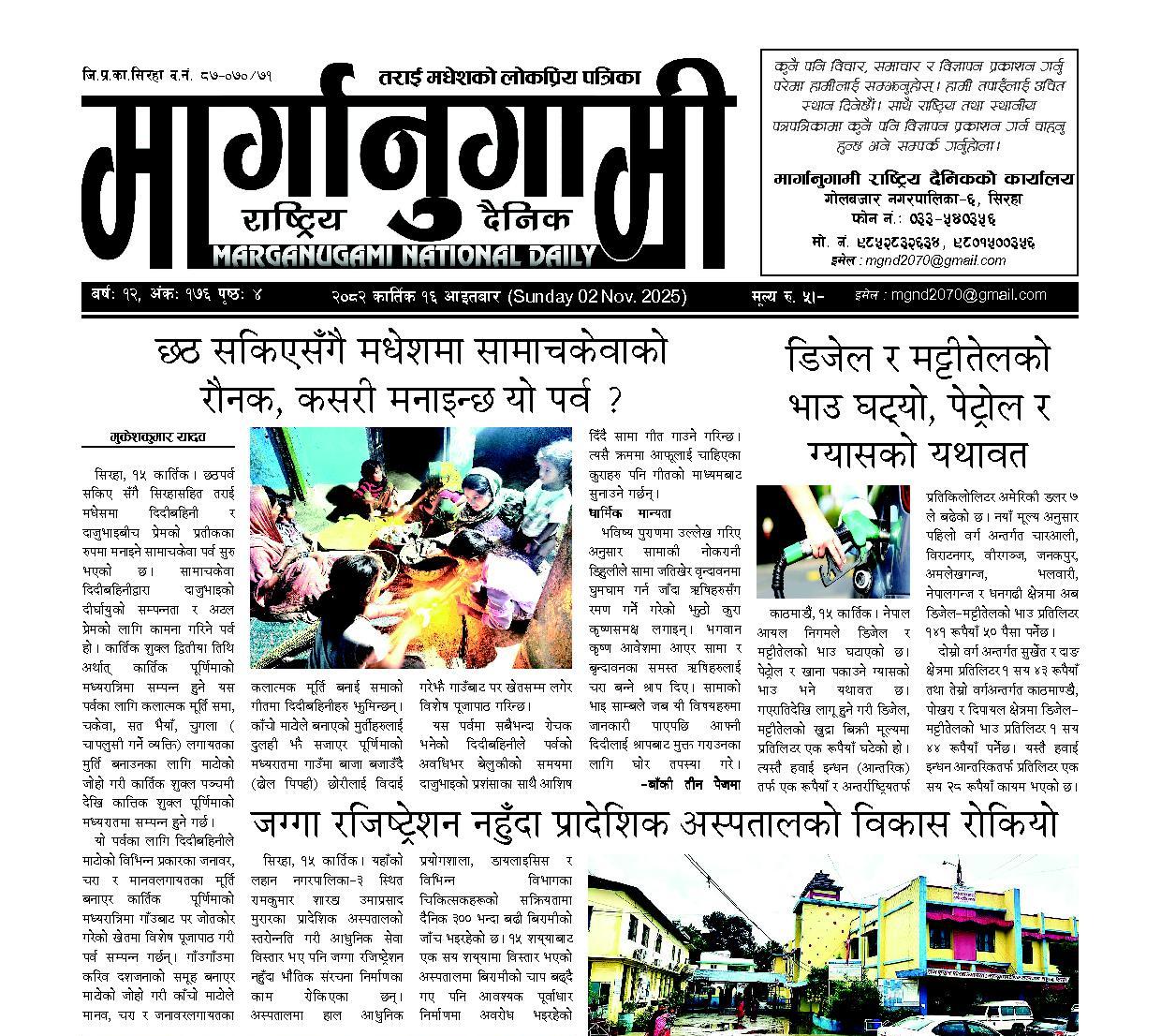 २०८२ कार्तिक १६ आइतबार (Sunday 02 Nov. 2025)