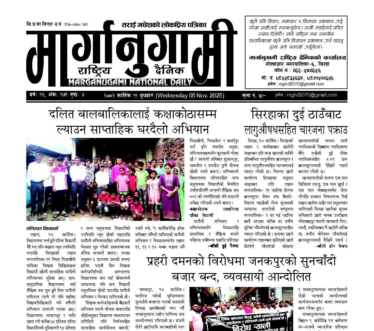 २०८२ कार्तिक १९ बुधबार (Wednesday 05 Nov. 2025)