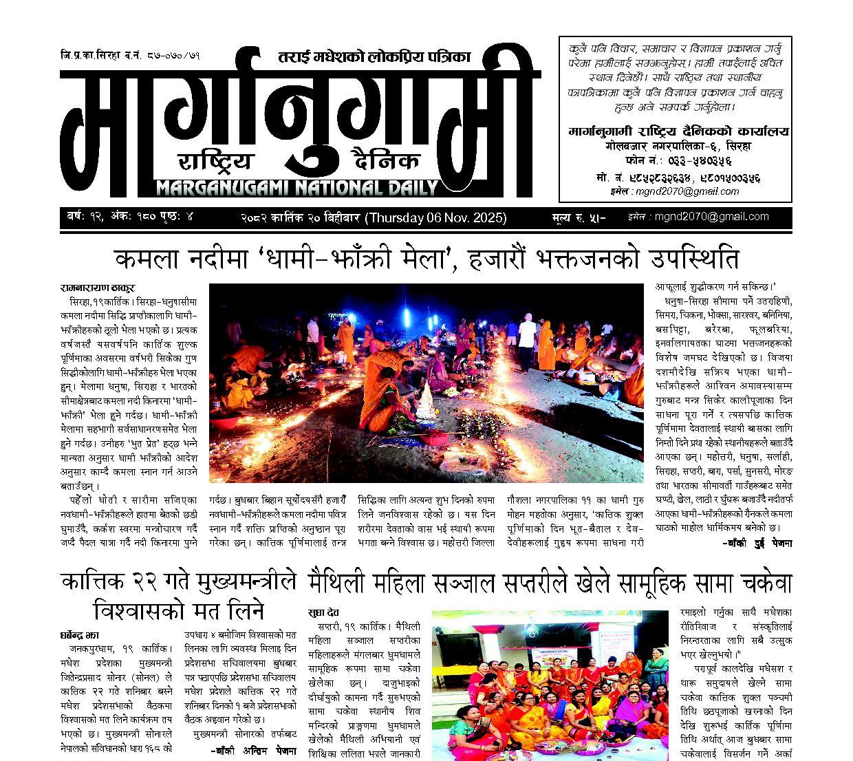 २०८२ कार्तिक २० बिहीबार (Thursday 06 Nov. 2025)