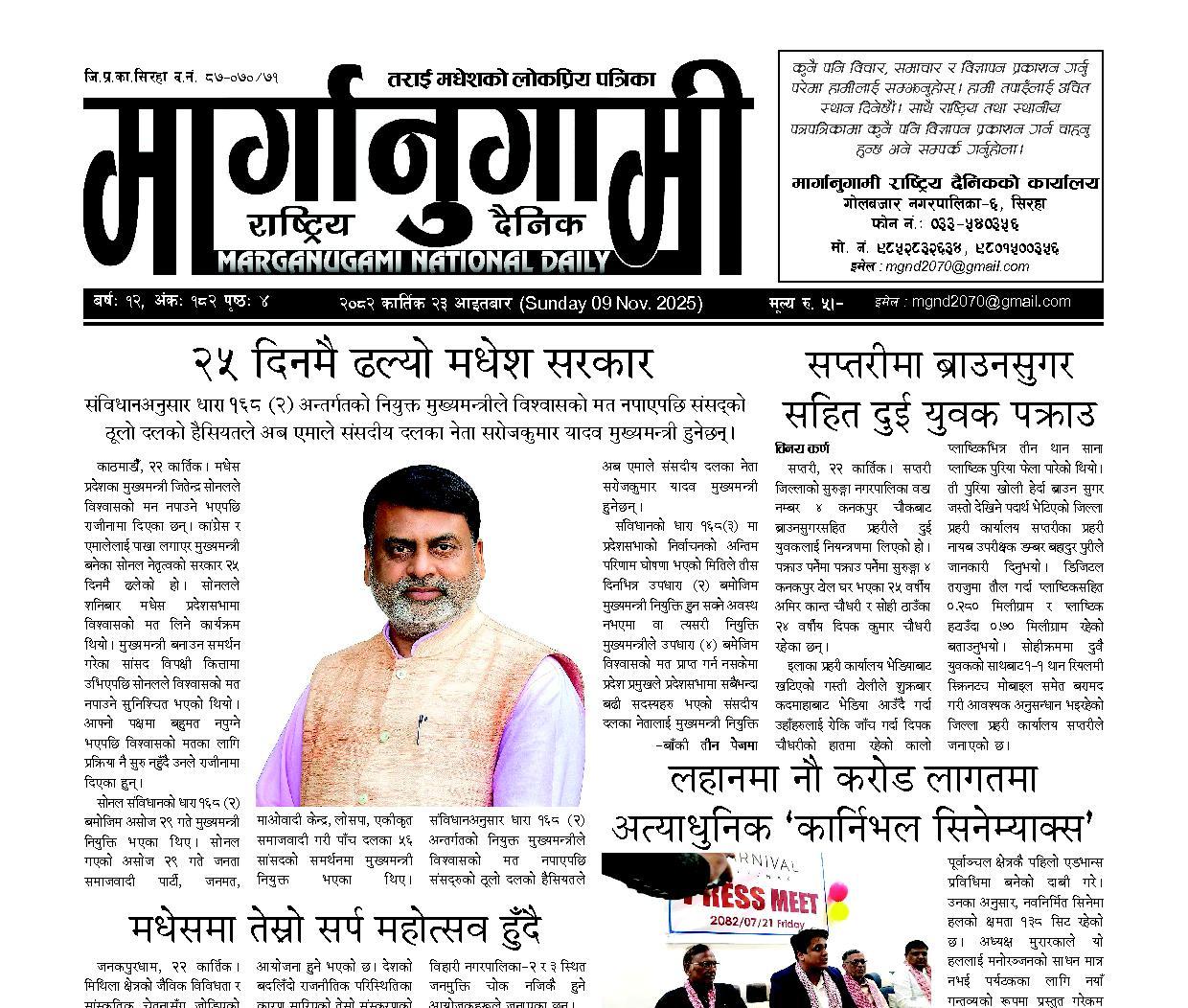२०८२ कार्तिक २३ आईतवार ( Sunday 09 Nov. 2025)
