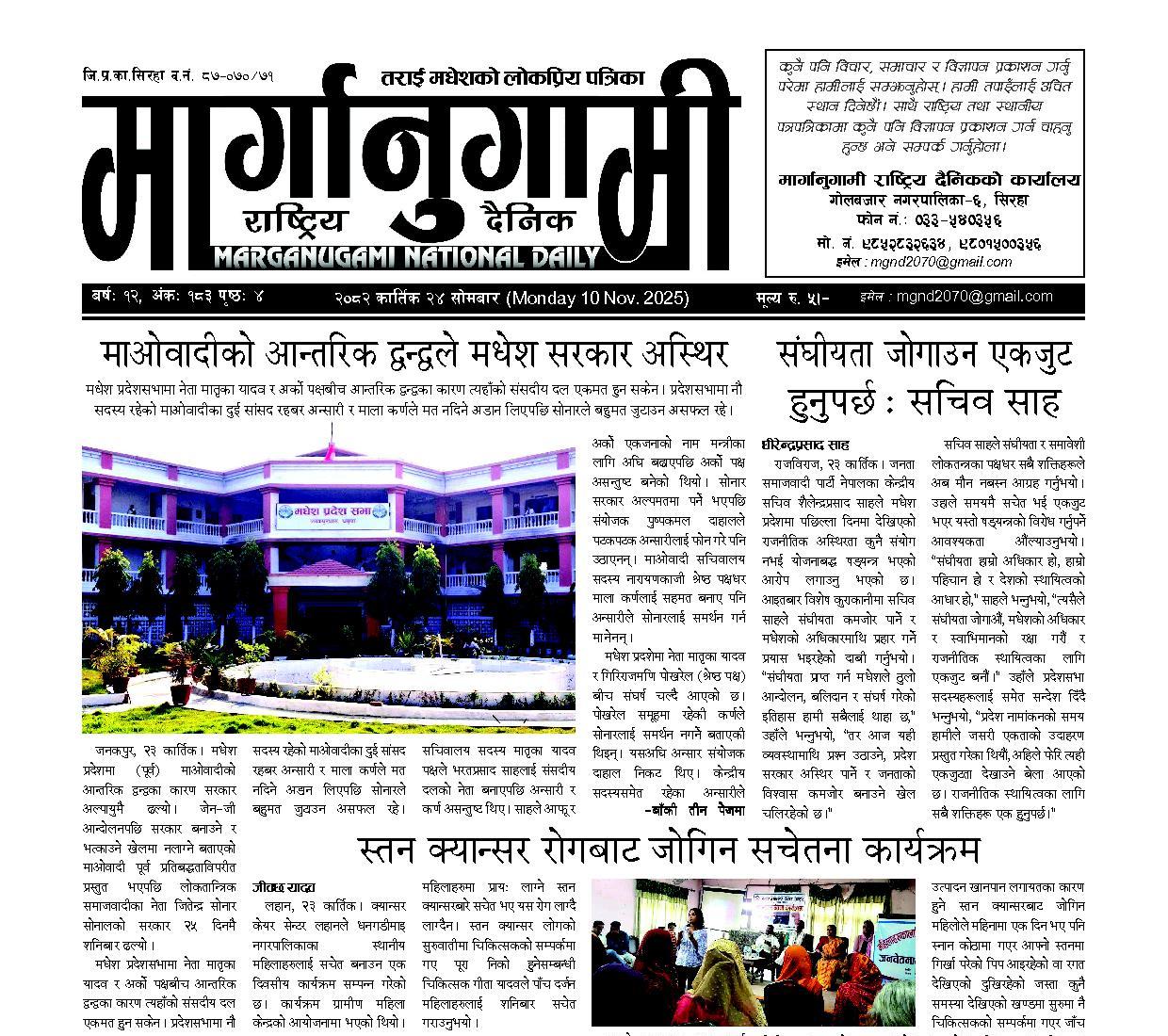 २०८२ कार्तिक २४ सोमबार (Monday 10 Nov. 2025)