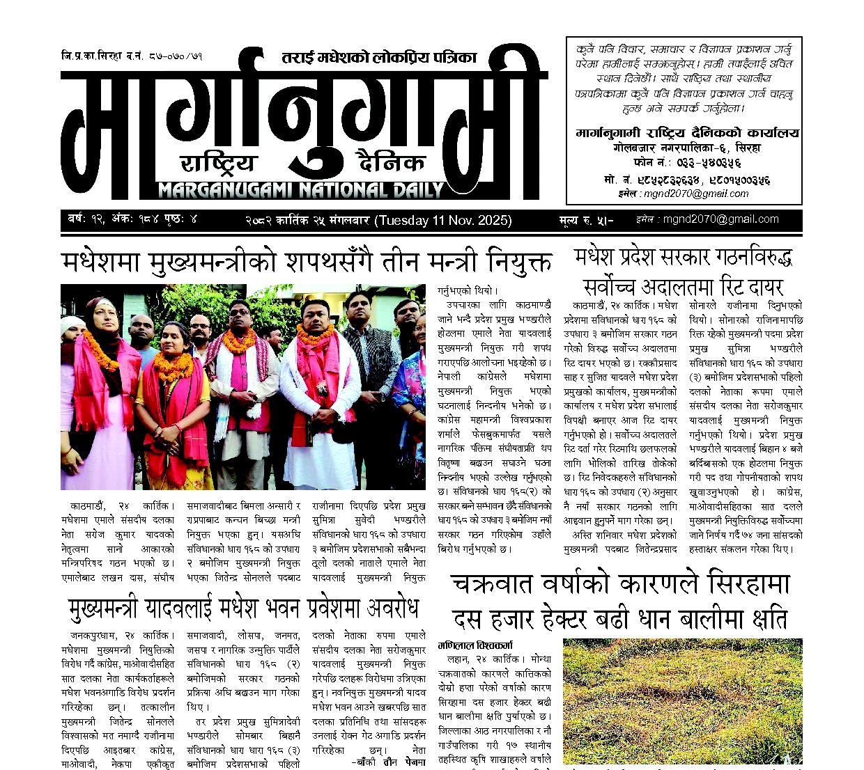२०८२ कार्तिक २५ मंगलबार (Tuesday 11 Nov. 2025)