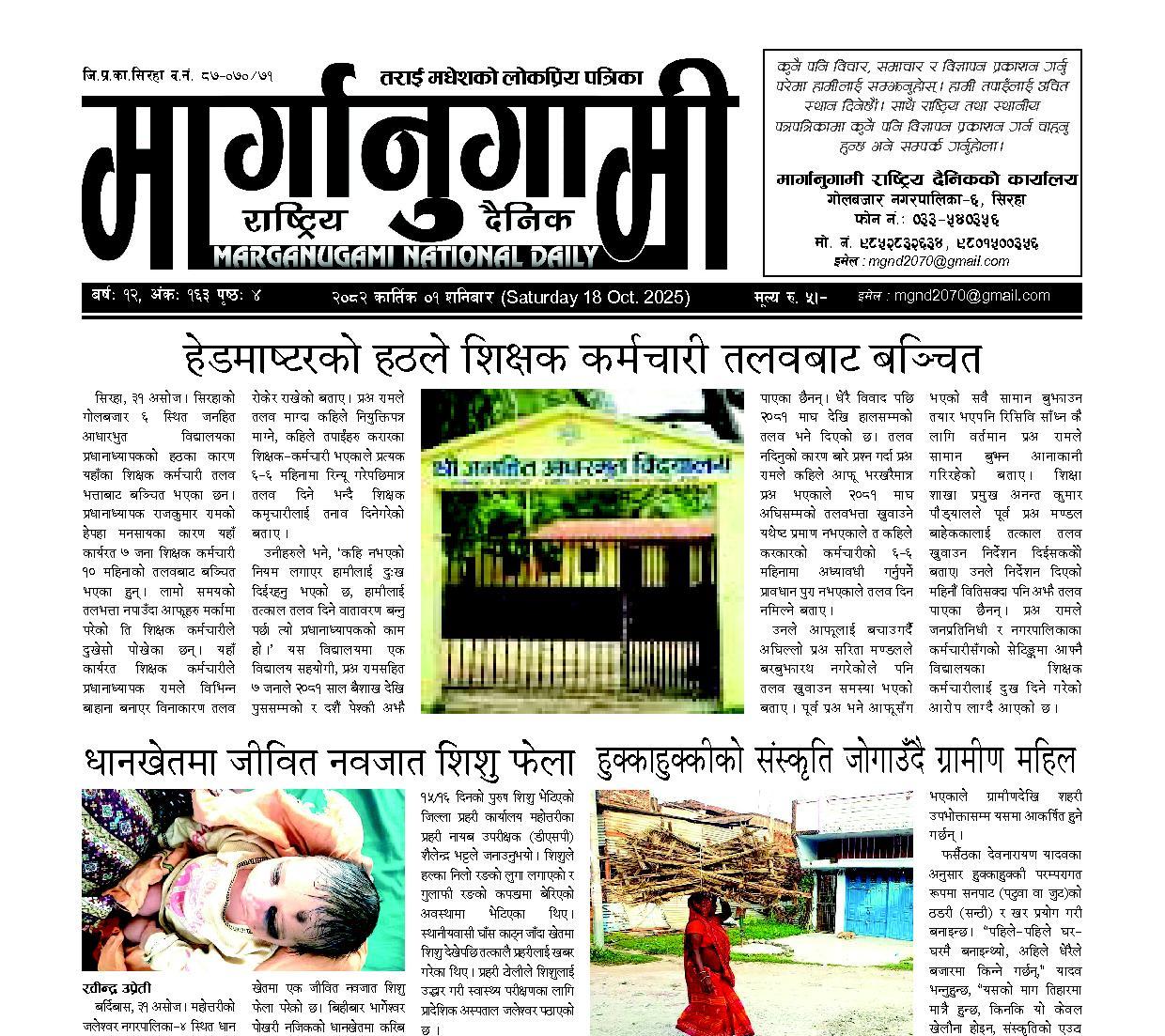 २०८२ कार्तिक ०१ शनिबार (Saturday 18 Oct. 2025)