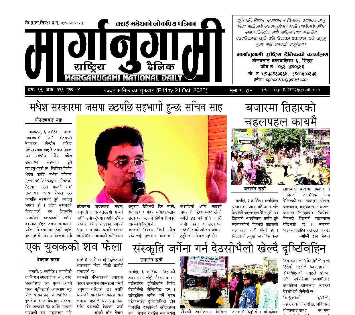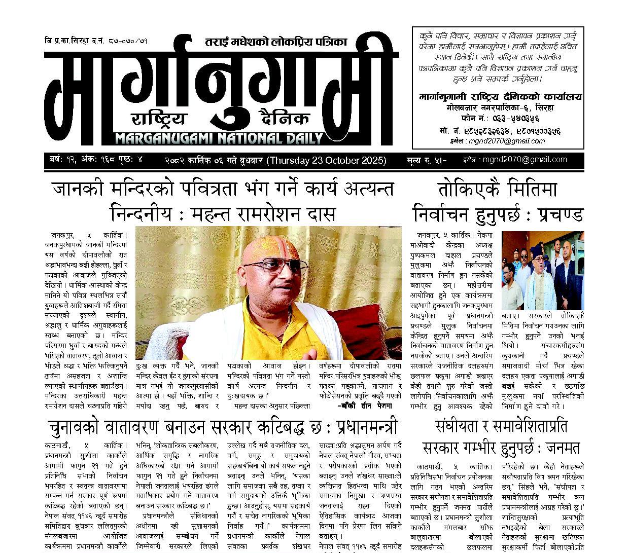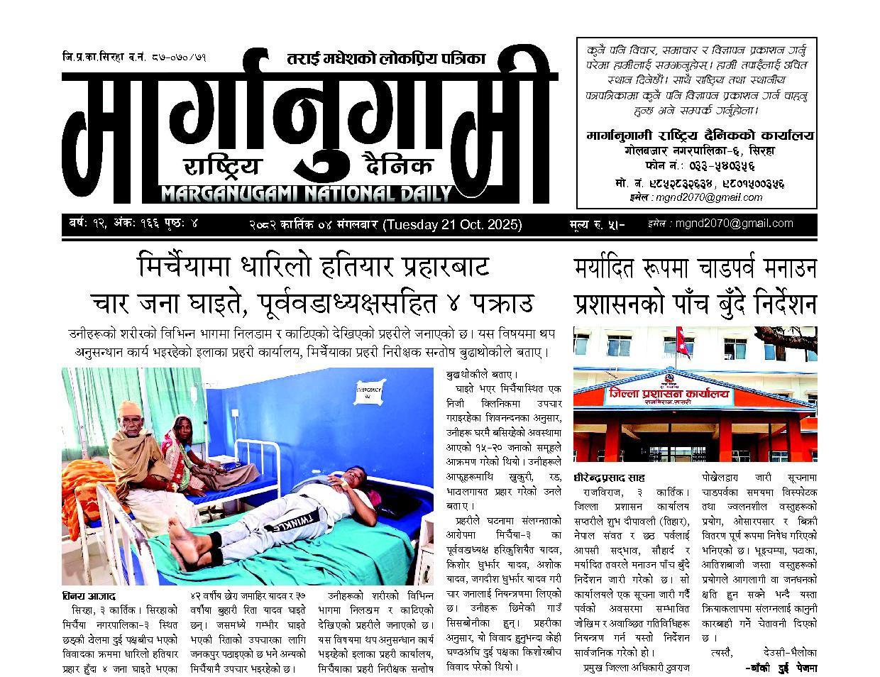 २०८२ कार्तिक ०४ मंगलबार (Tuesday 21 Oct. 2025)