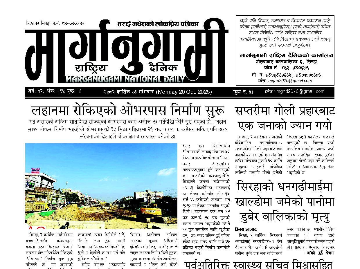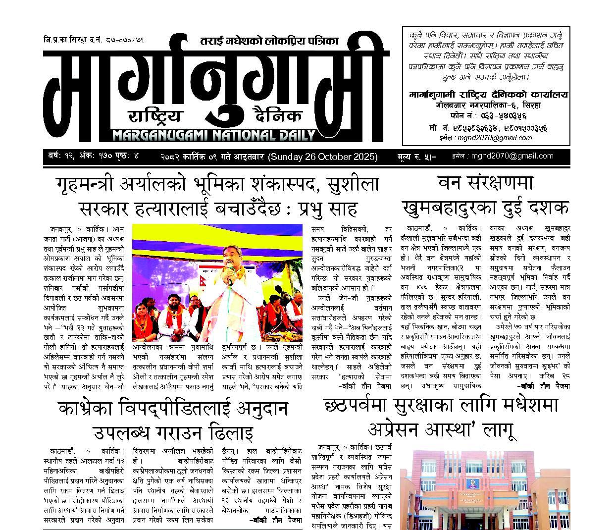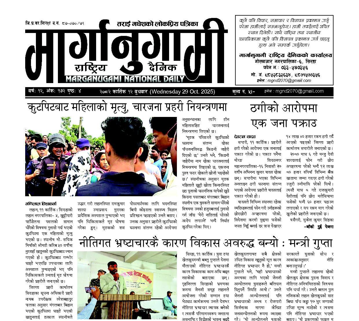 २०८२ कार्तिक ०४ मंगलबार (Tuesday 21 Oct. 2025)