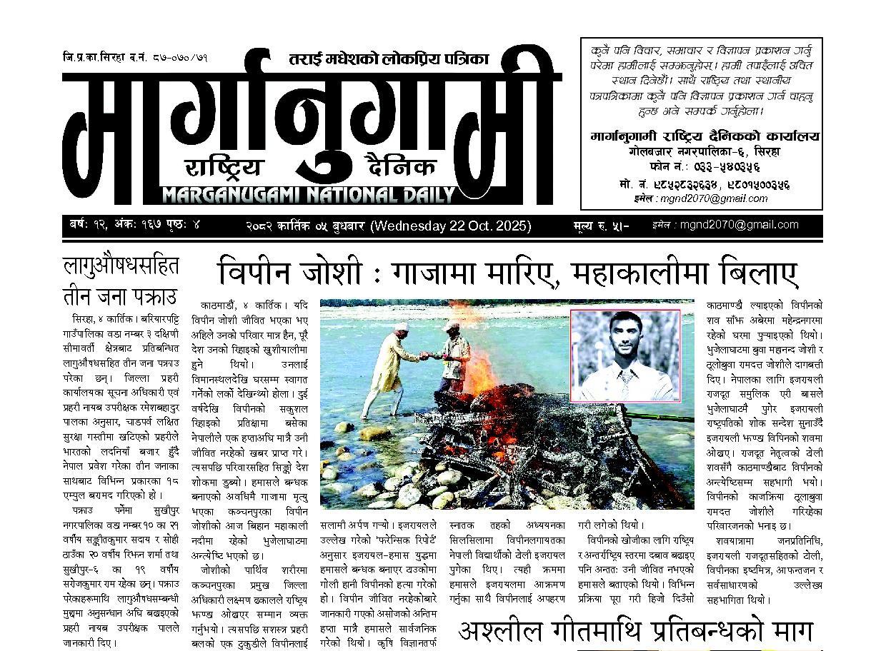 २०८२ कार्तिक ०५ बुधबार (Wednesday 22 Oct. 2025)