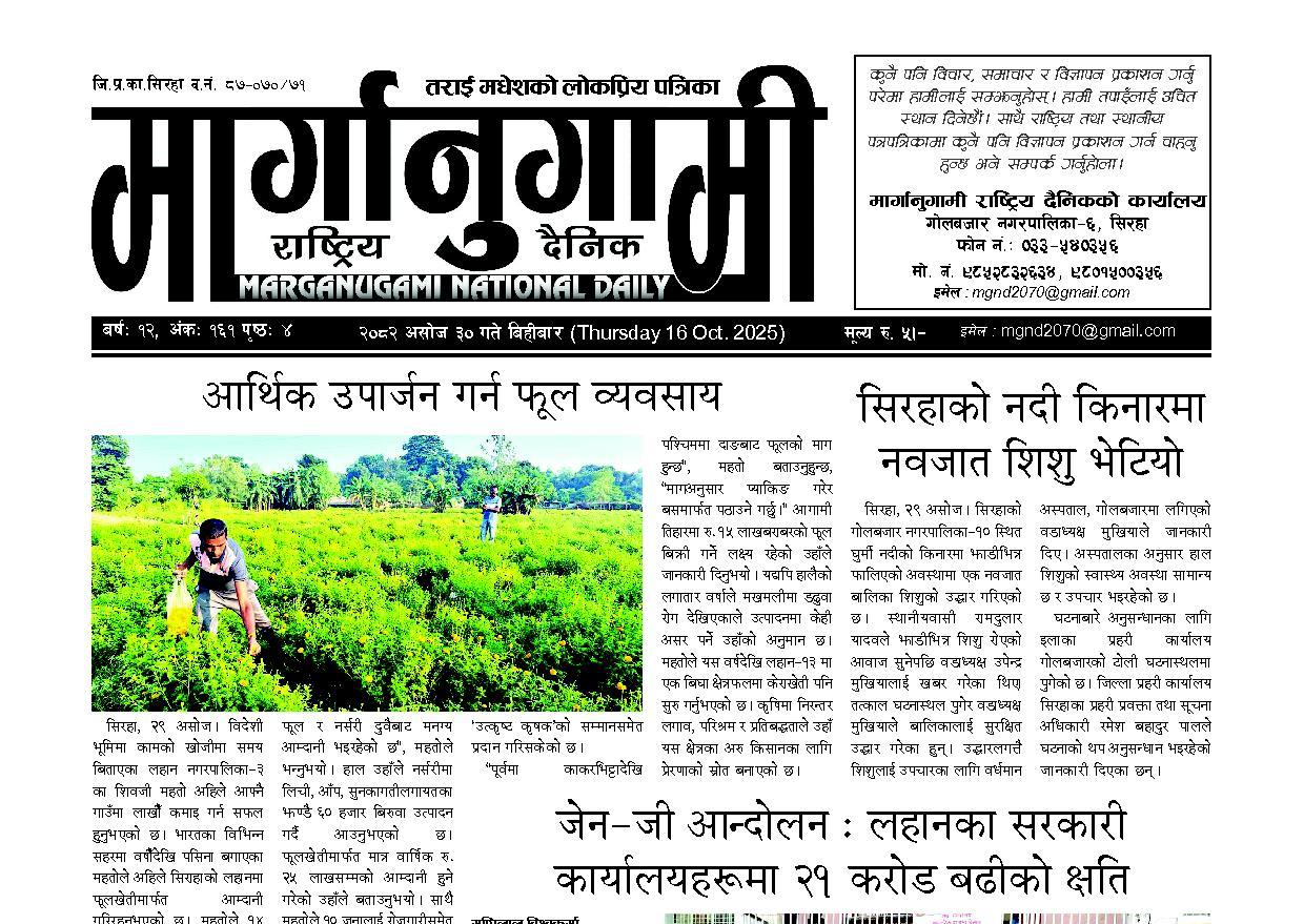 २०८२ असोज ३० गते बिहीबार (Thursday 16 Oct. 2025)