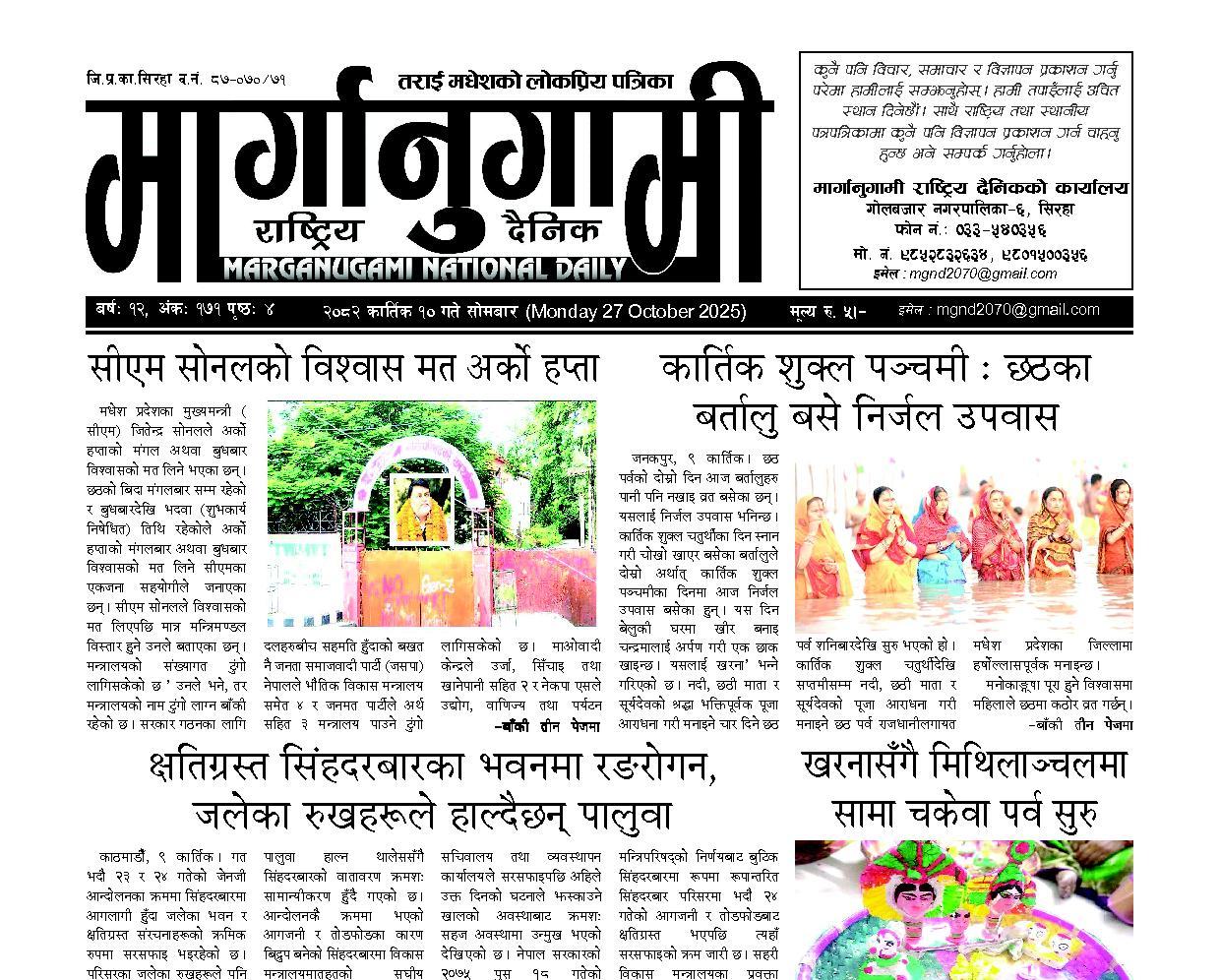 २०८२ कार्तिक १० गते सोमबार (Monday 27 October 2025)