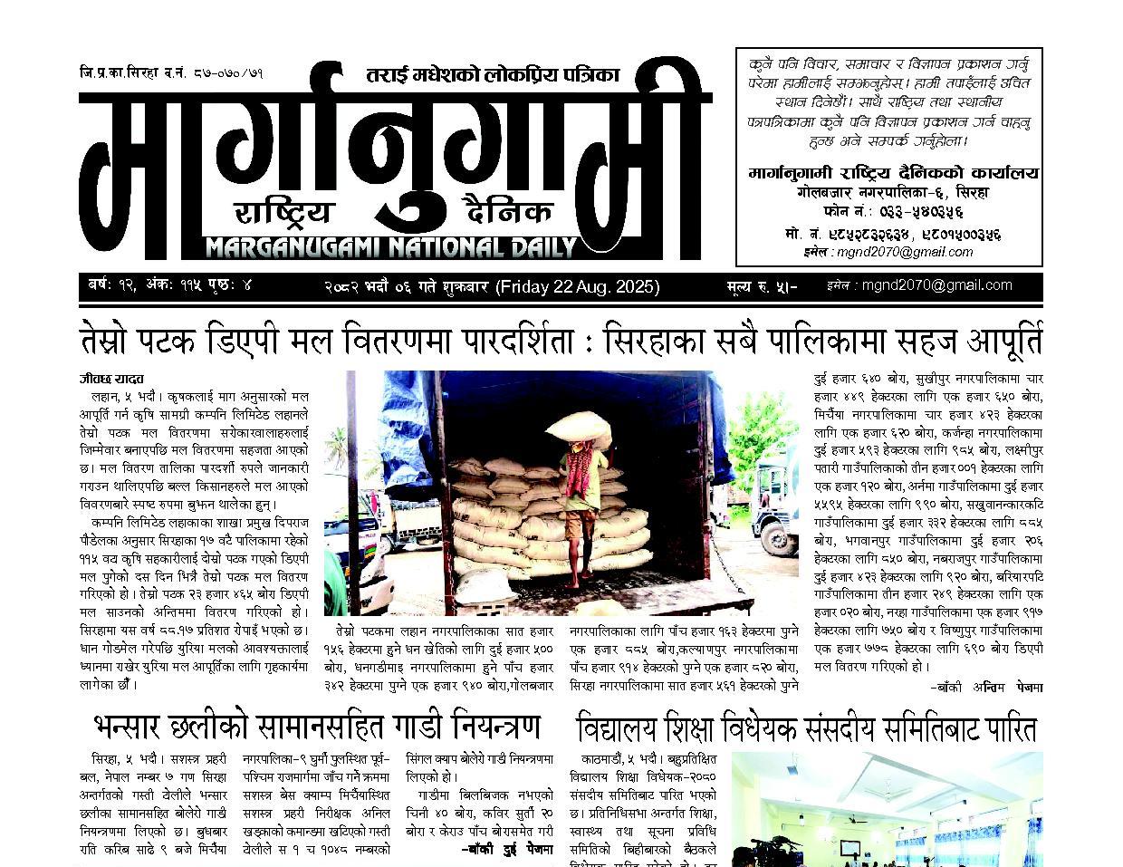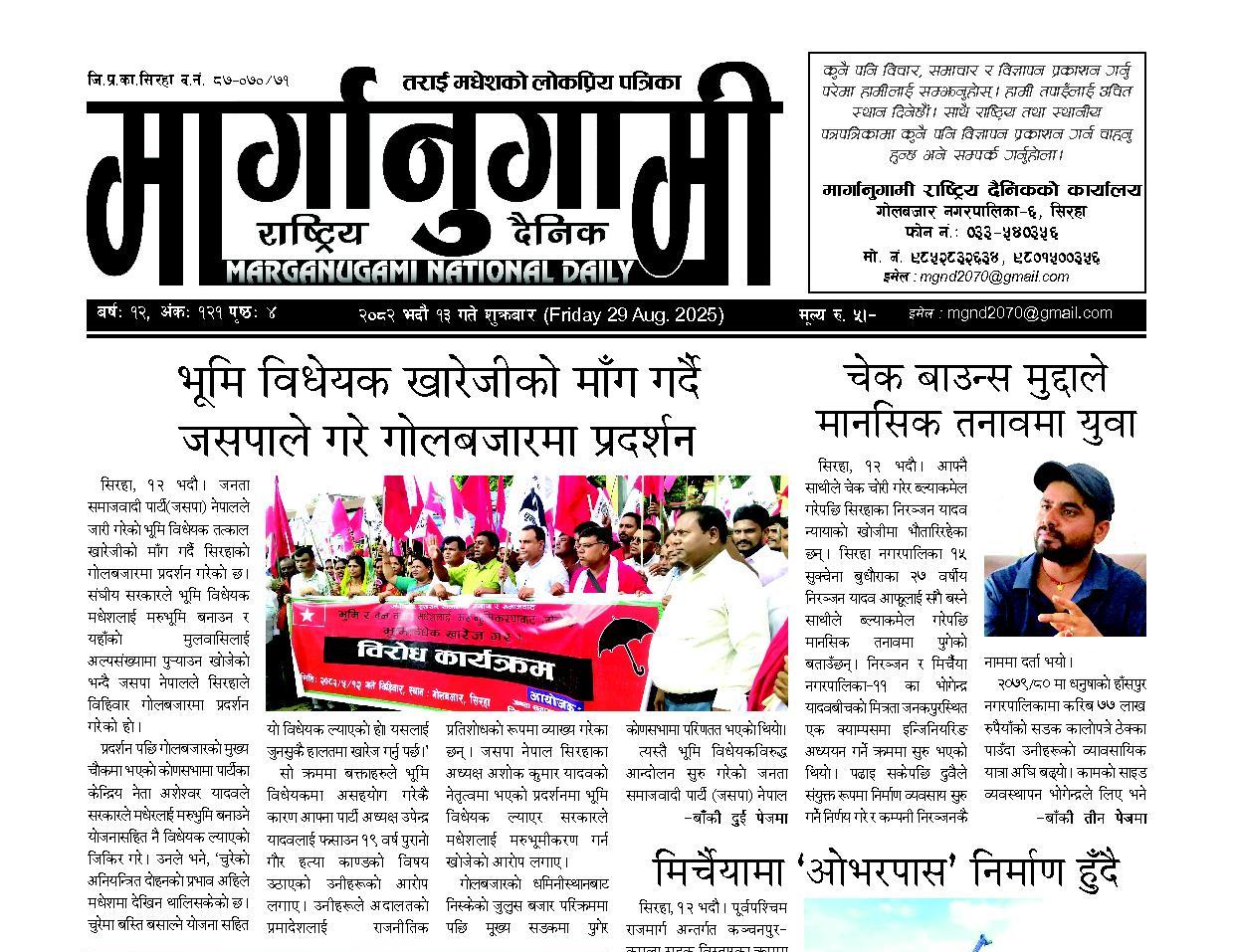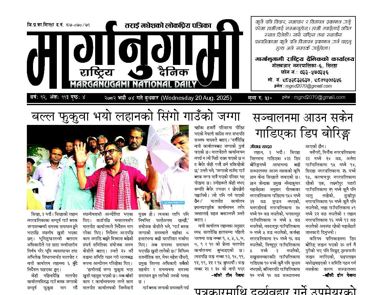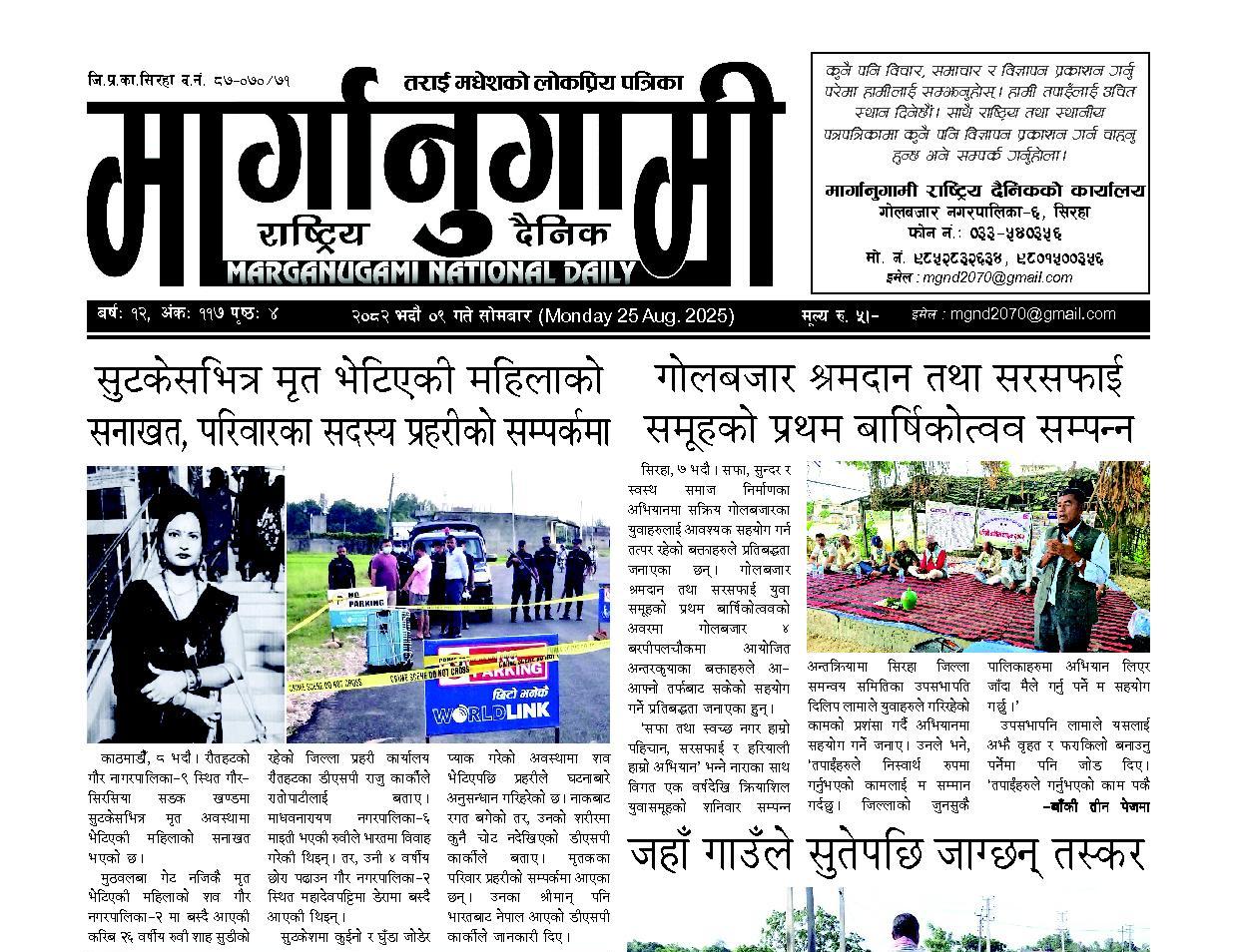 २०८२भदौ ०४ गतेबुधबार (Wednesday 20 Aug. 2025)