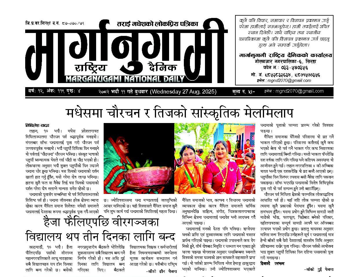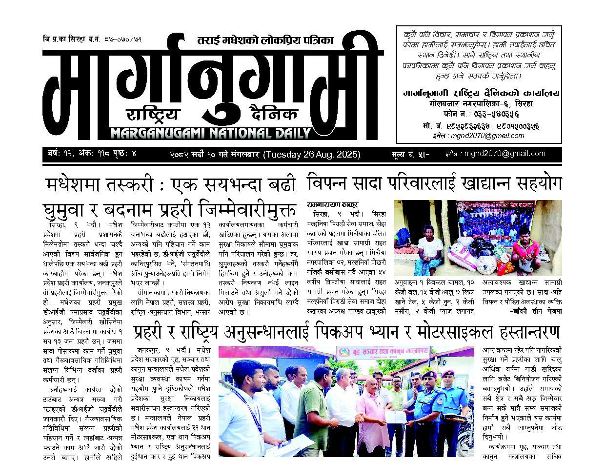 २०८२ भदौ १० गते मंगलबार (Tuesday 26 Aug. 2025)