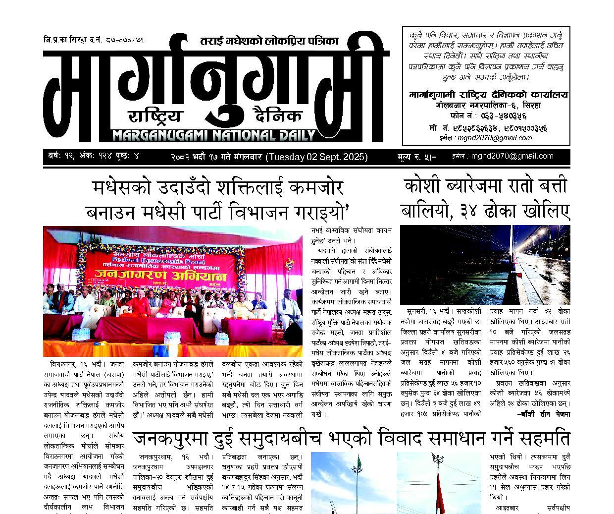 २०८२ भदौ १७ गते मंगलबार (Tuesday 02 Sept. 2025)