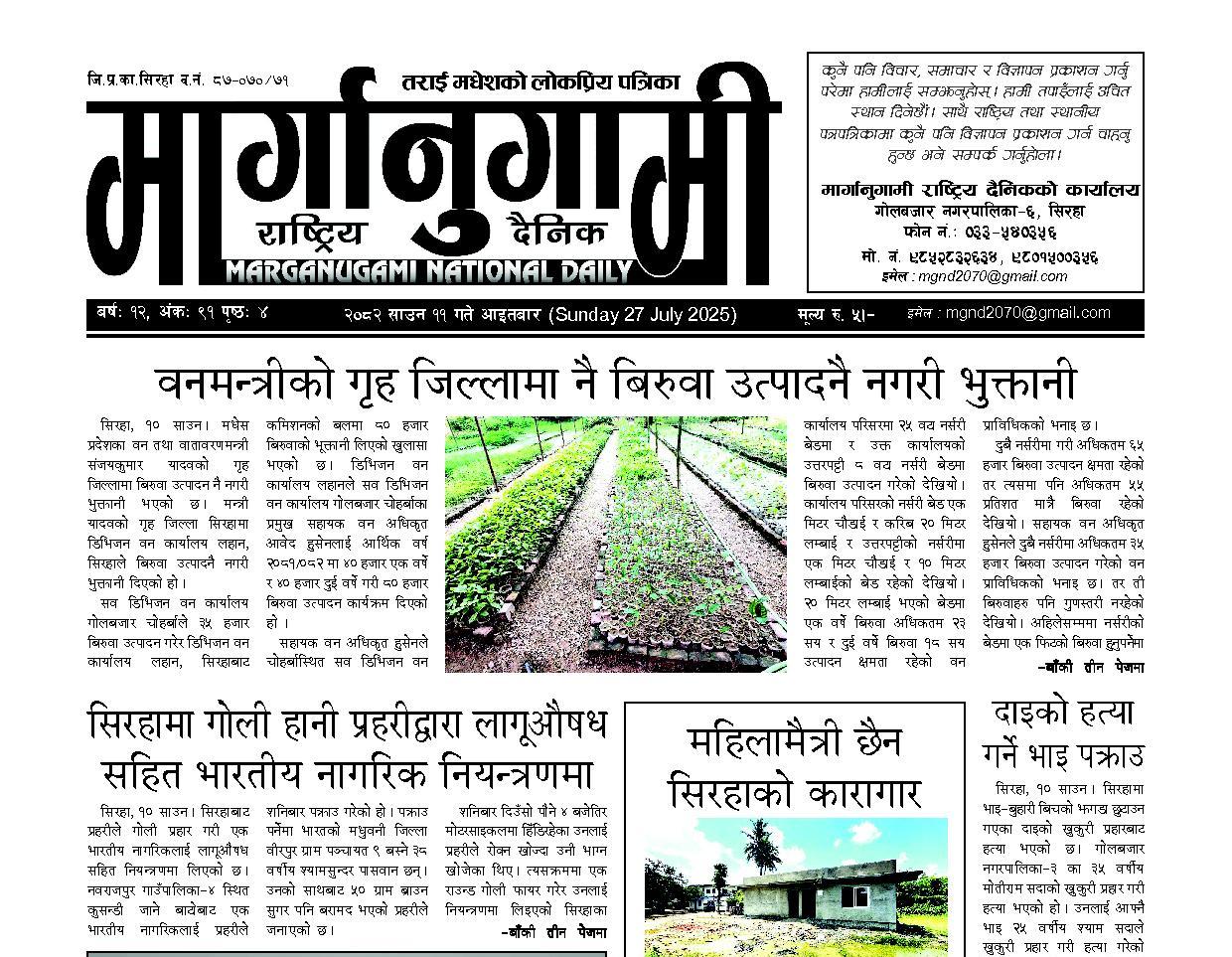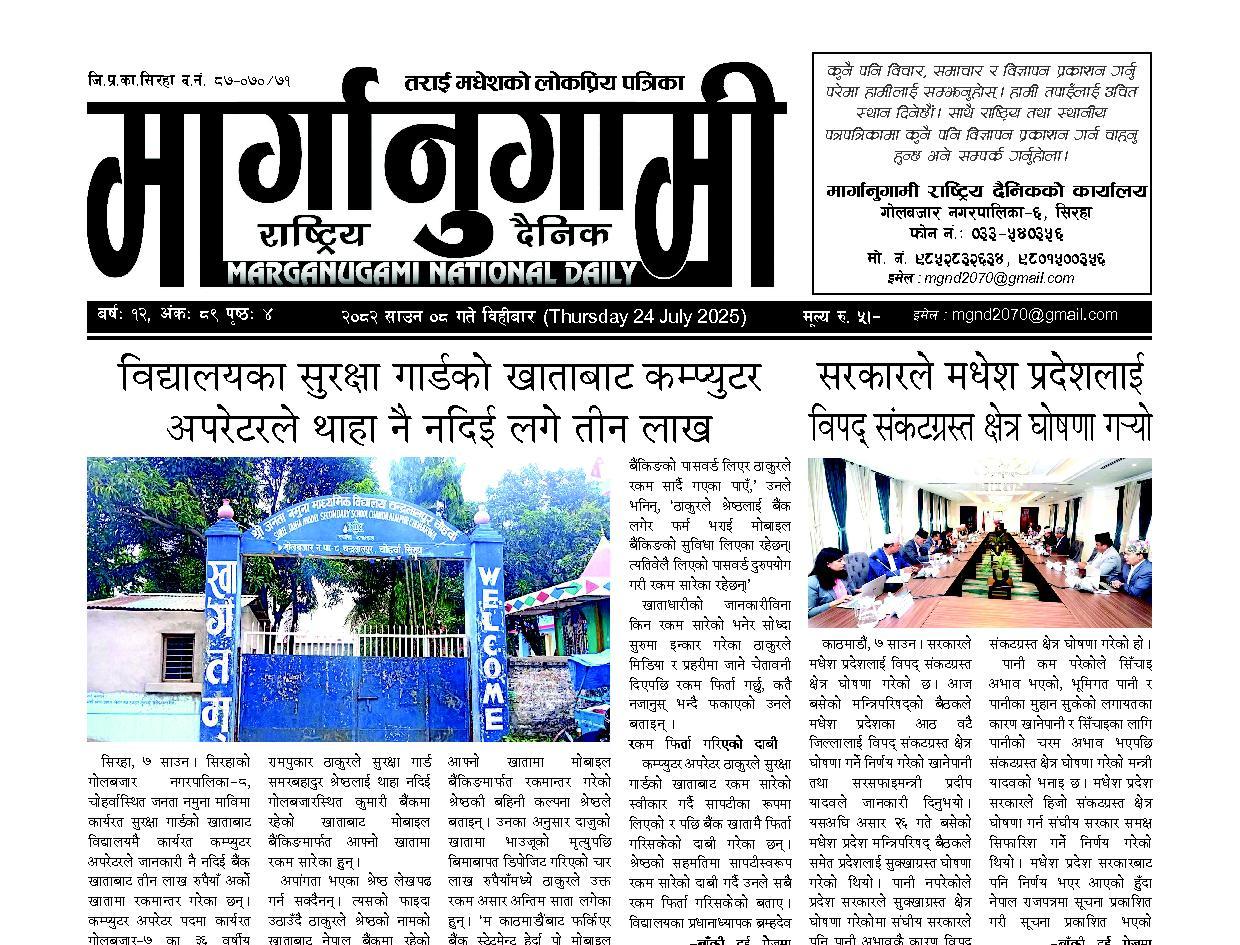 २०८२ साउन ०८ गते विहीबार (Thursday 24 July 2025)