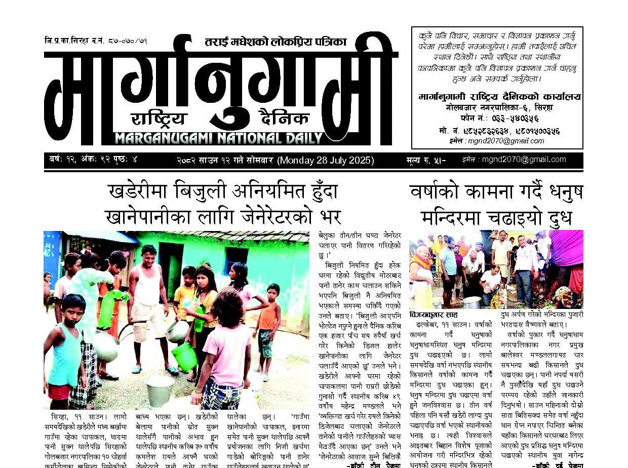 २०८२ साउन १२ गते सोमबार (Monday 28 July 2025)