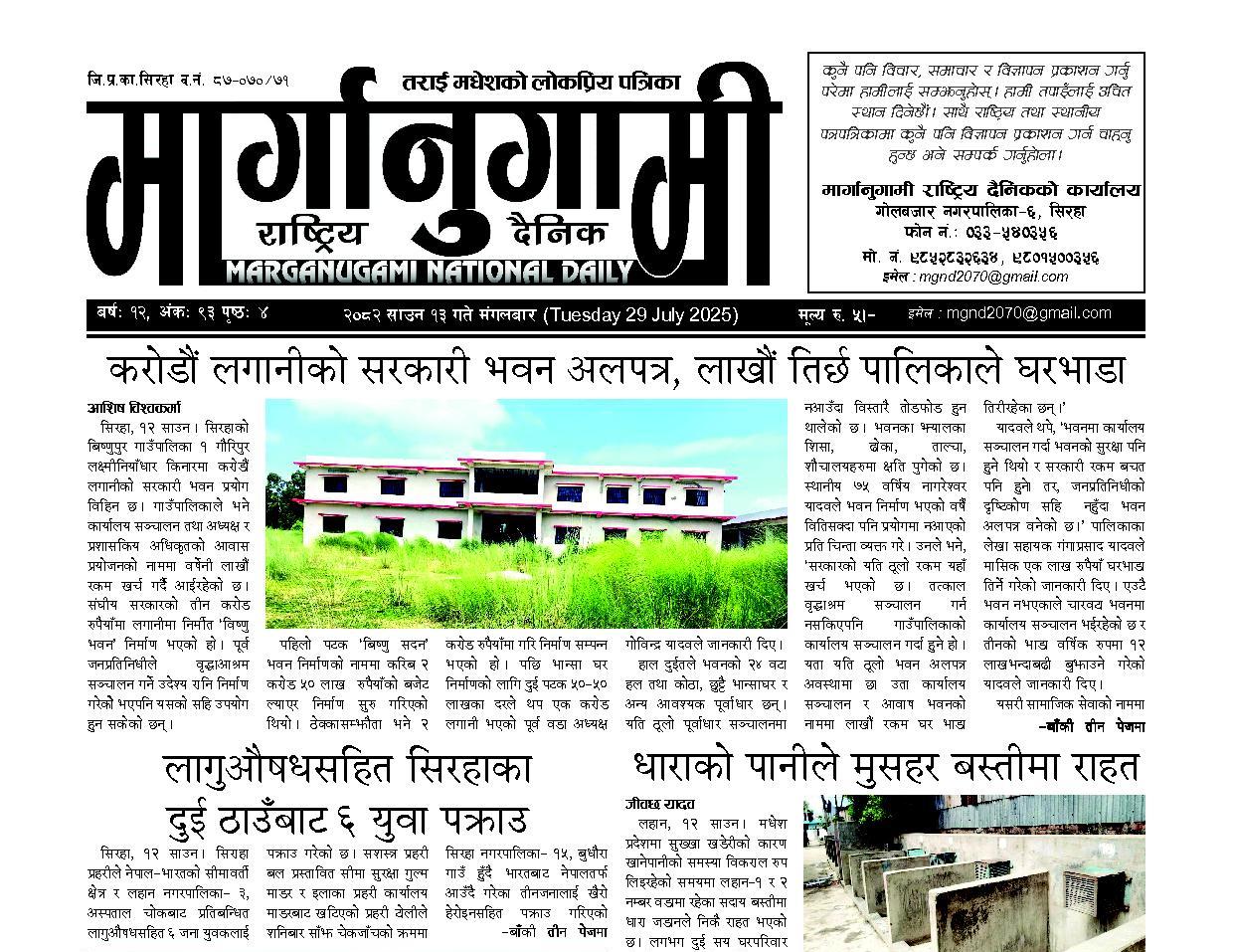 २०८२ साउन १३ गते मंगलबार (Tuesday 29 July 2025)