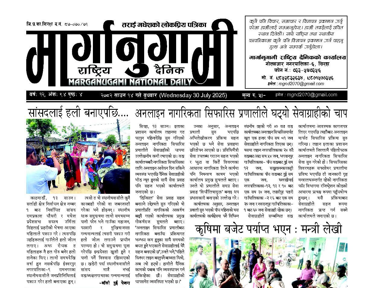 २०८२ साउन १४ गते बुधबार (Wednesday 30 July 2025)