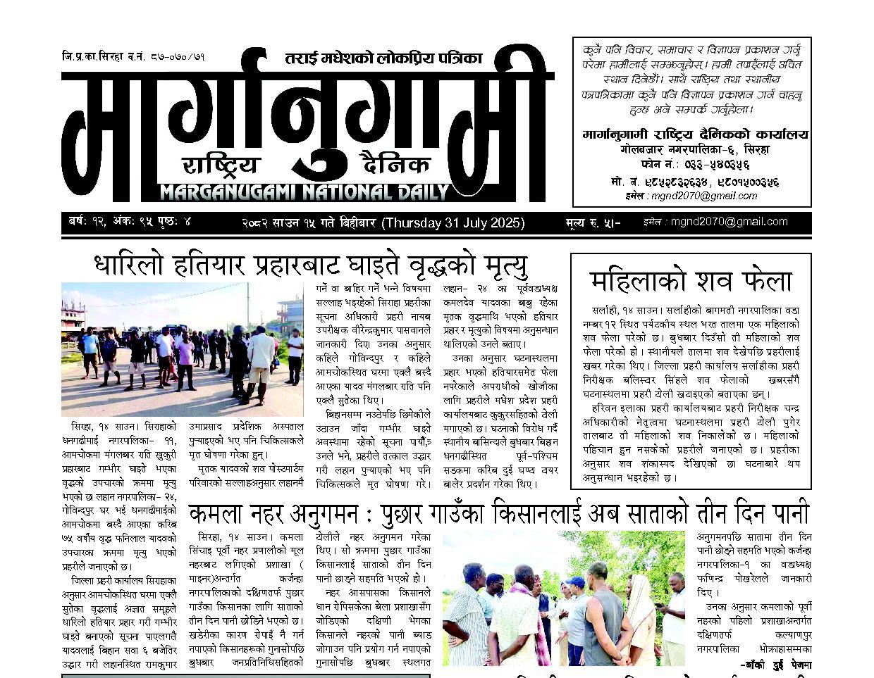 २०८२ साउन १५ गते विहीबार (Thursday 31 July 2025)