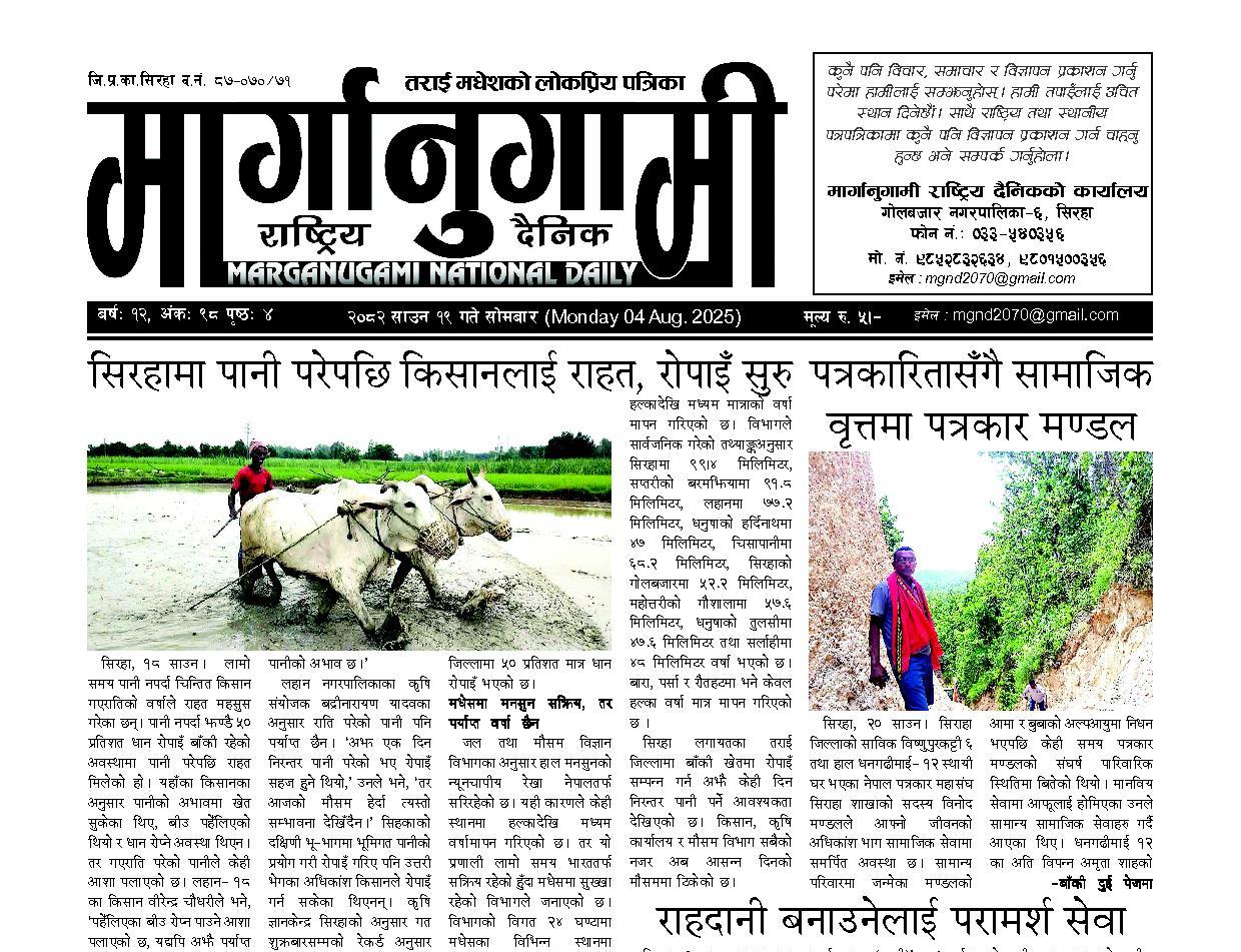 २०८२ साउन १९ गते सोमबार (Monday 04 Aug. 2025)