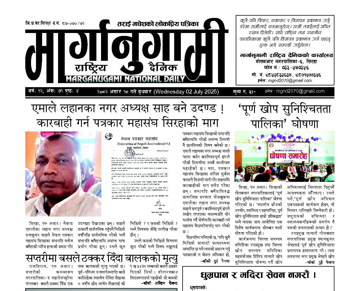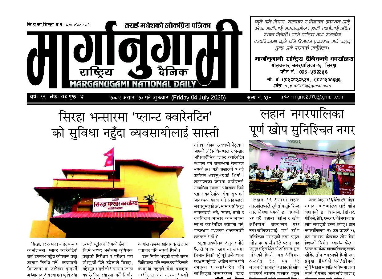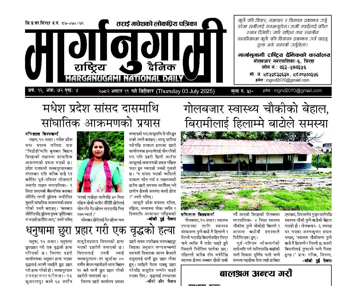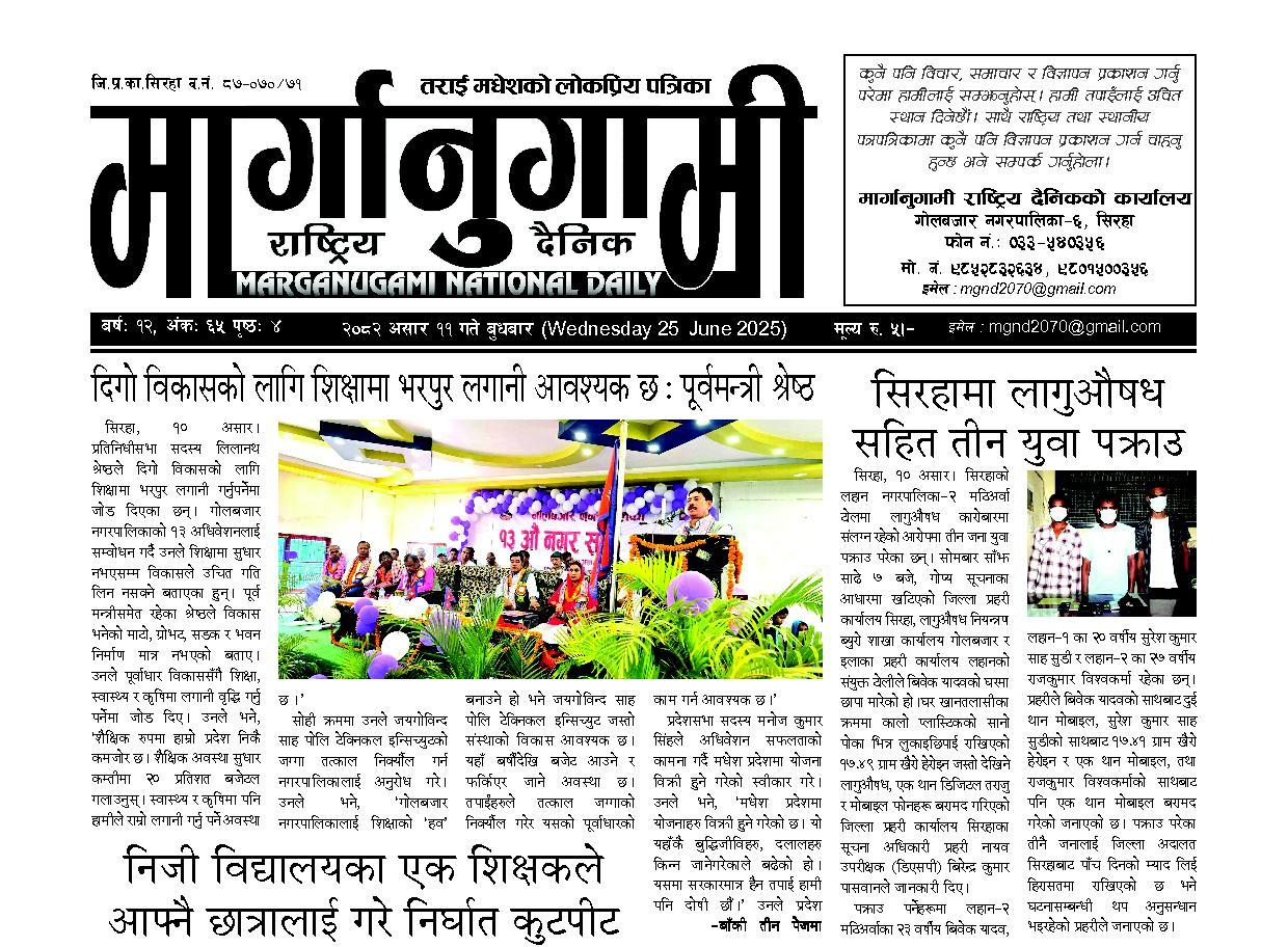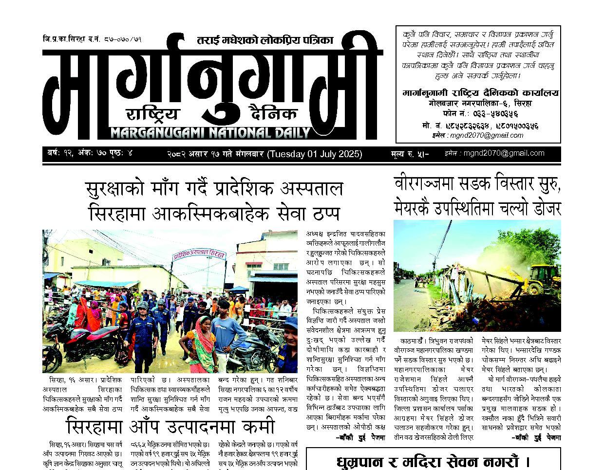 २०८२ असार १७ गते मंगलबार (Tuesday 01 July 2025)