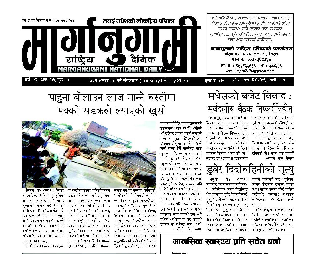 २०८२ असार २५ गते मंगलबार (Tuesday 09 July 2025)