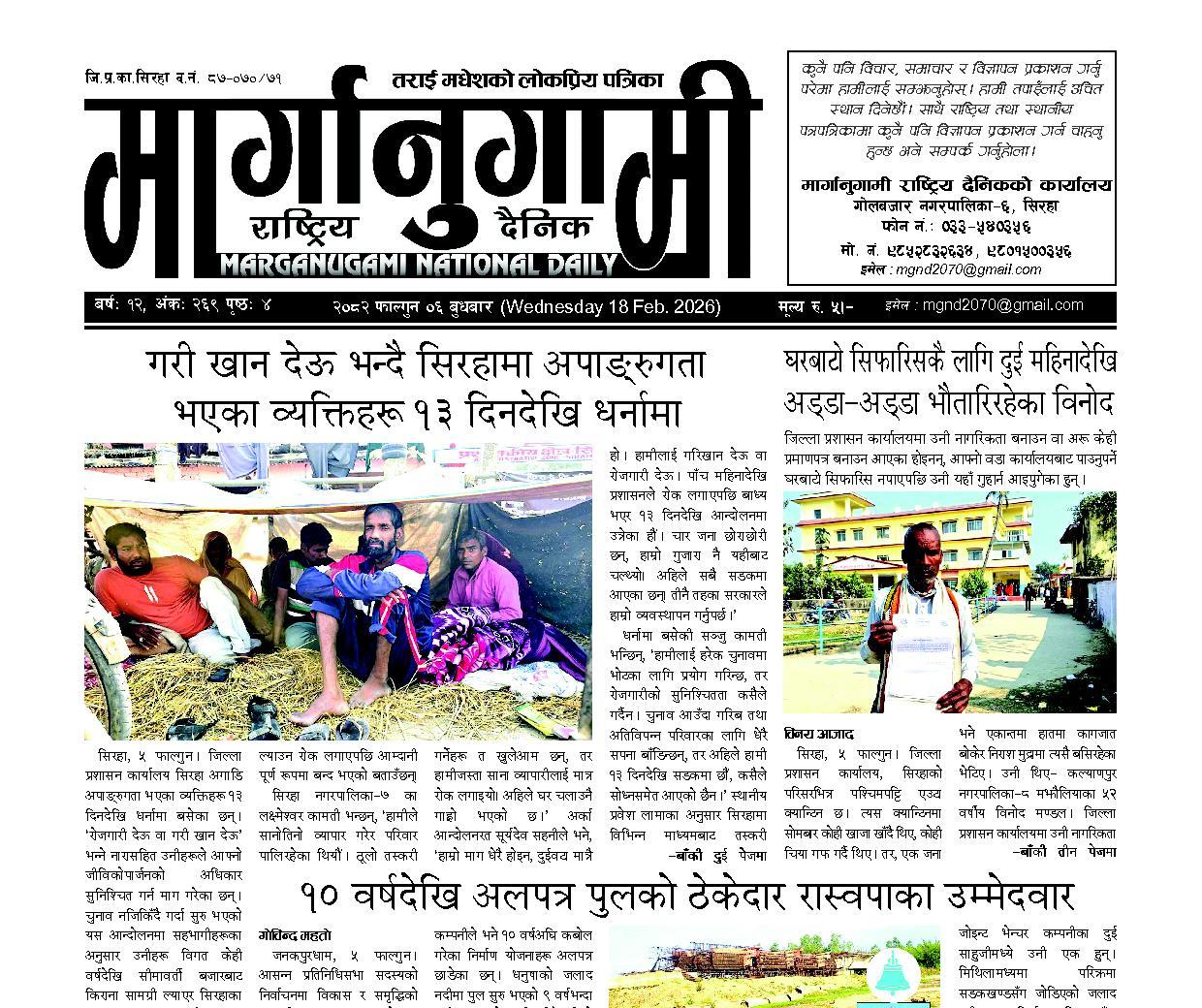 २०८२ फाल्गुन ०६ बुधबार (Wednesday 18 Feb. 2026)