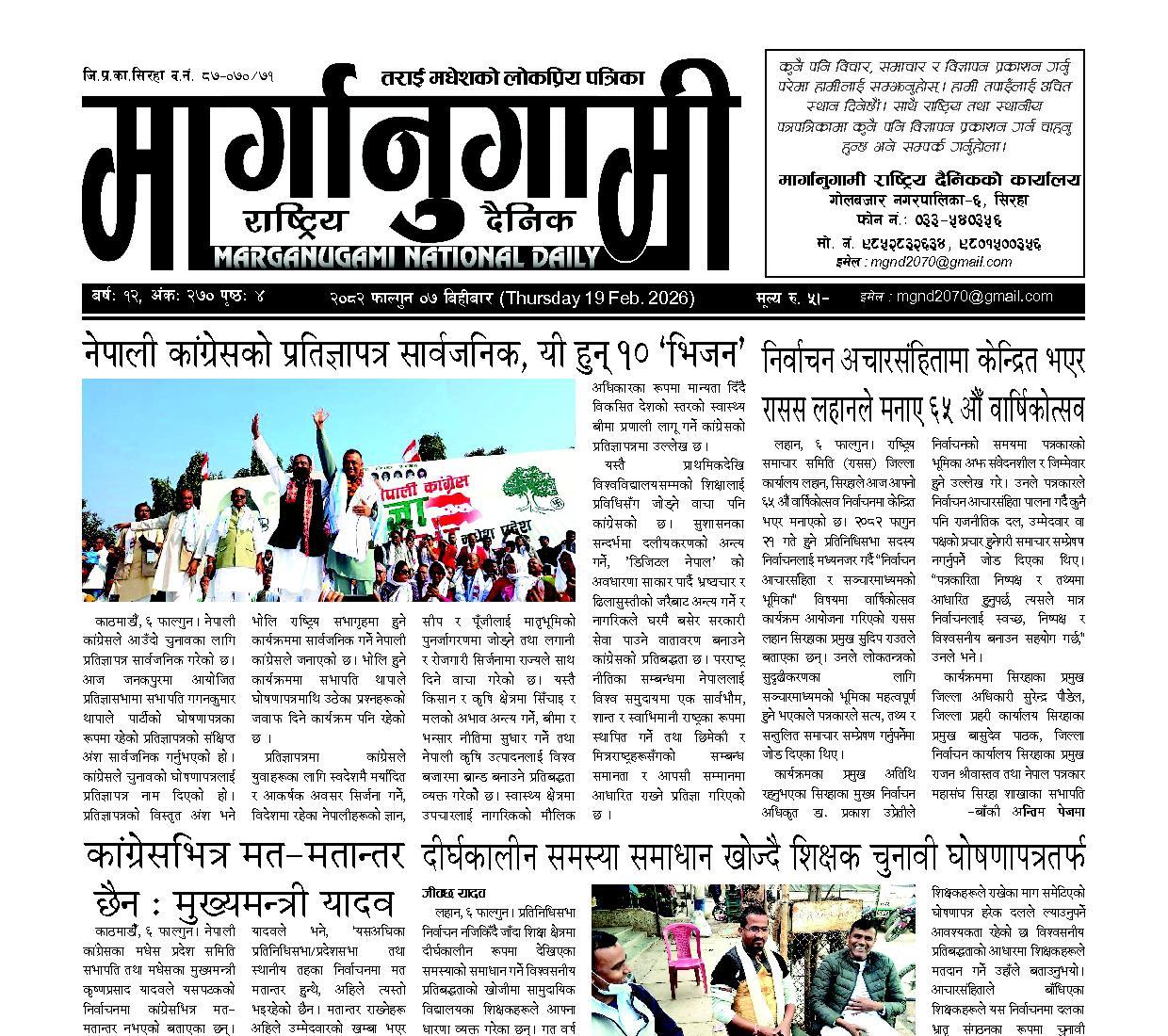 २०८२ फाल्गुन ०७ बिहीबार (Thursday 19 Feb. 2026)