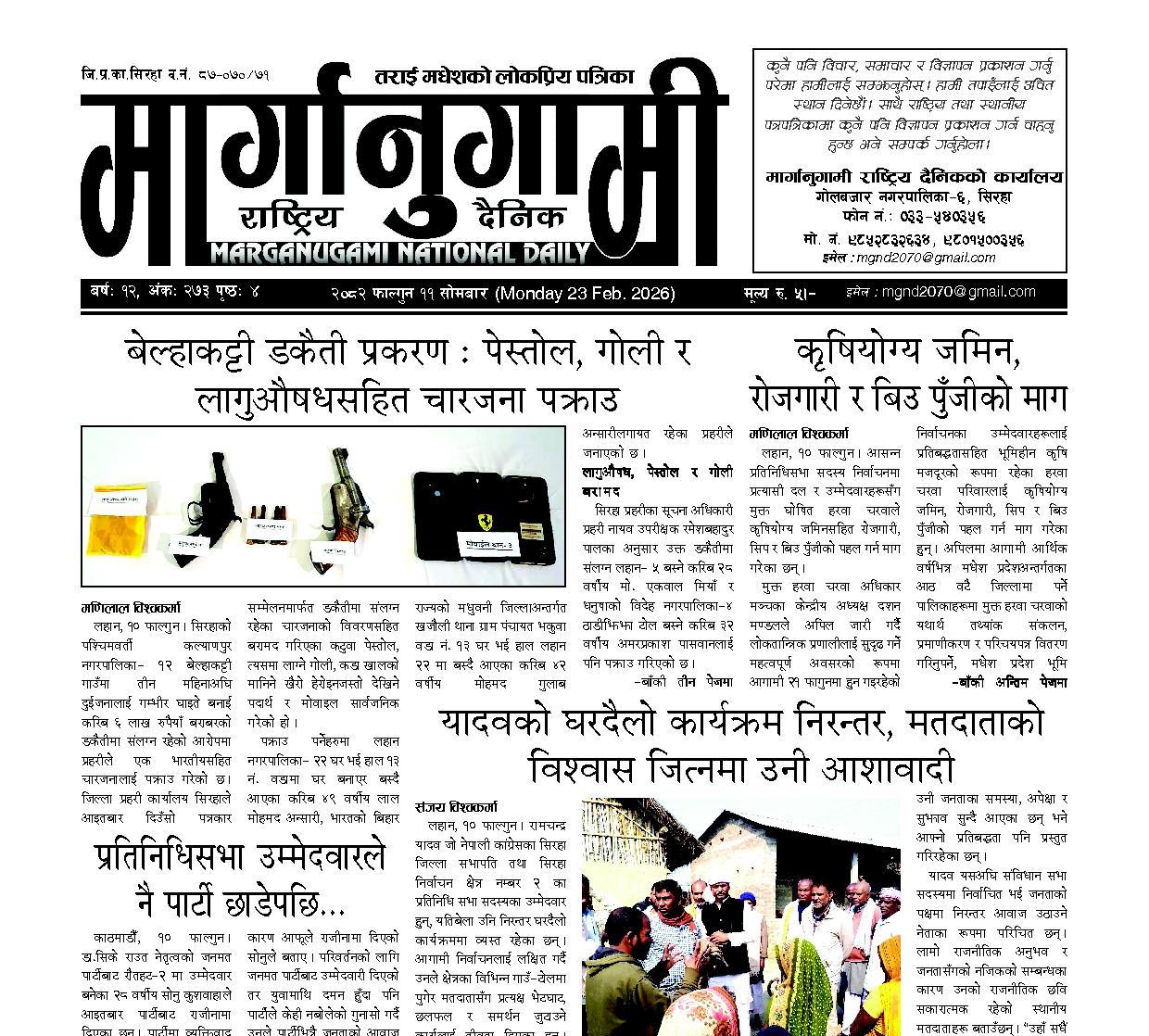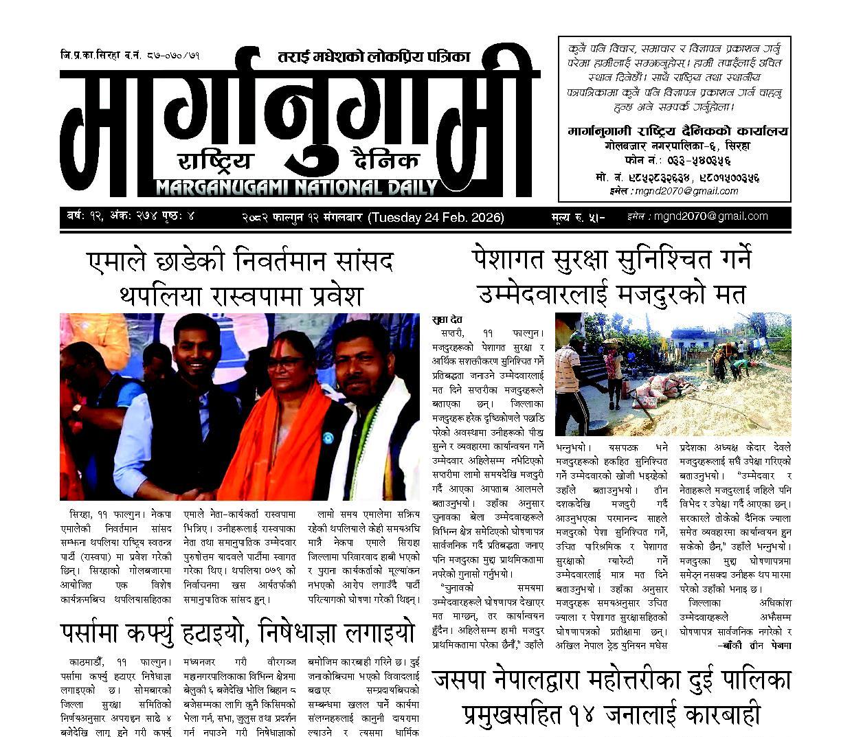 २०८२ फाल्गुन १२ मंगलबार (Tuesday 24 Feb. 2026)