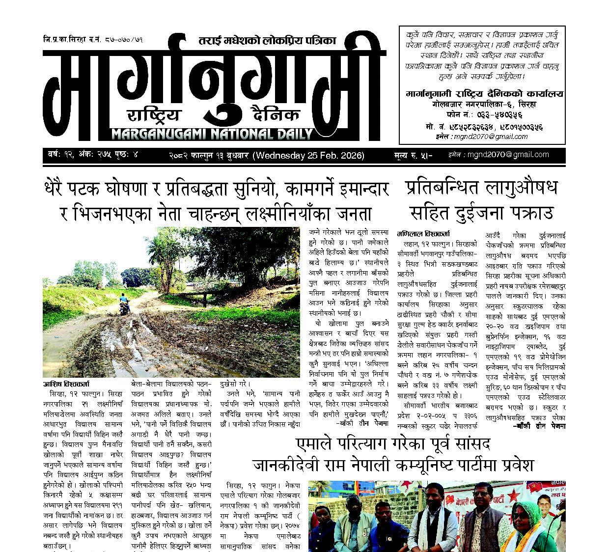 २०८२ फाल्गुन १३ बुधबार (Wednesday 25 Feb. 2026)