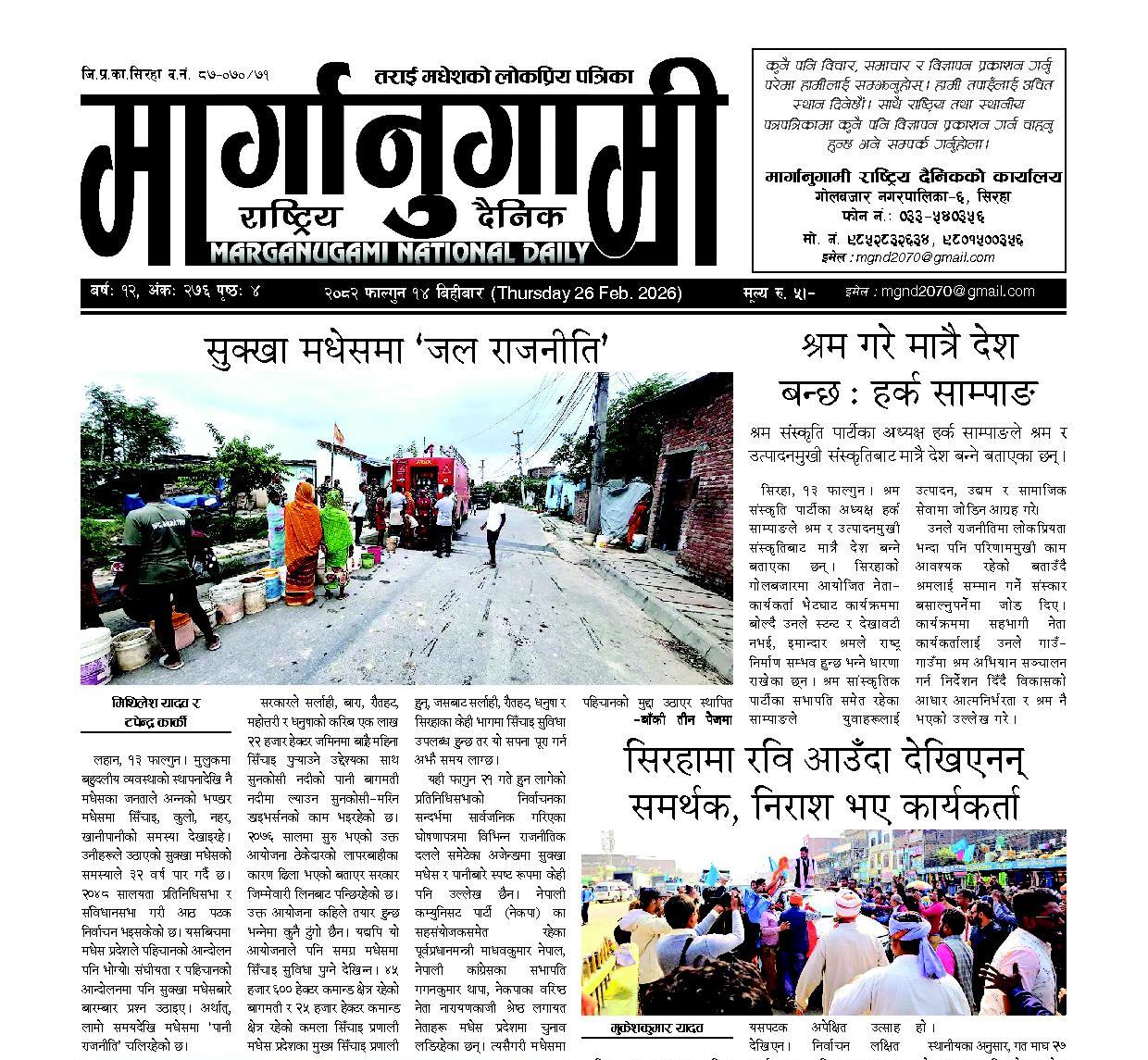 २०८२ फाल्गुन १४ बिहीबार (Thursday 26 Feb. 2026)