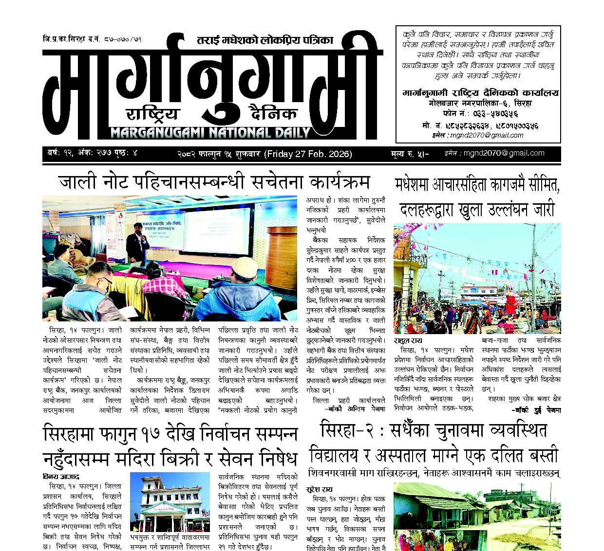 २०८२ फाल्गुन १५ शुक्रबार (Friday 27 Feb. 2026)