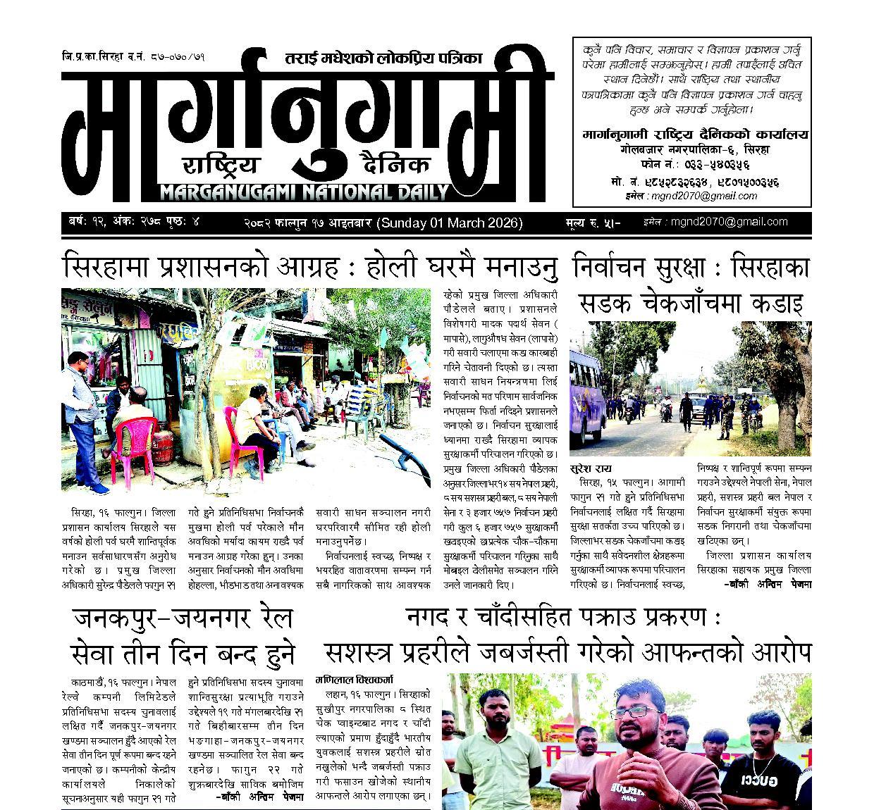 २०८२ फाल्गुन १७ आइतबार (Sunday 01 March 2026)