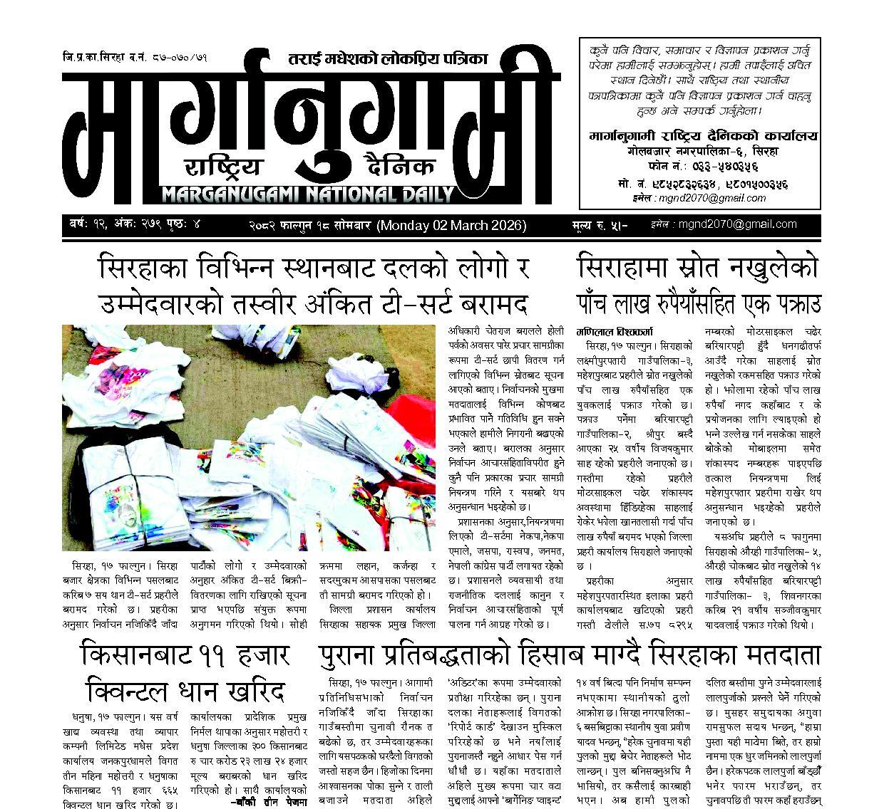 २०८२ फाल्गुन १८ सोमबार (Monday 02 March 2026)