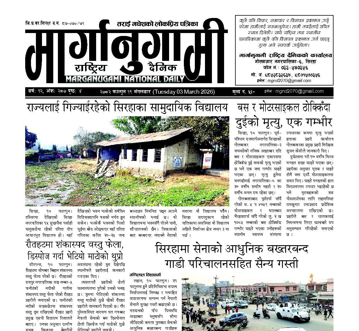 २०८२ फाल्गुन १९ मंगलबार (Tuesday 03 March 2026)