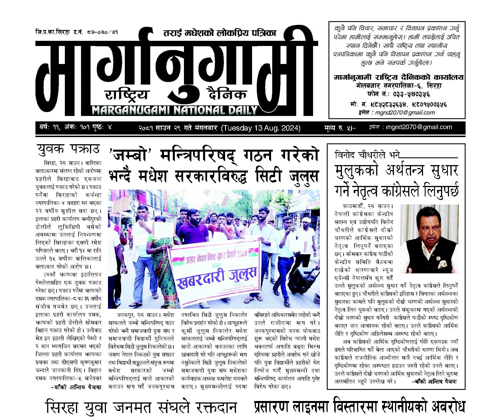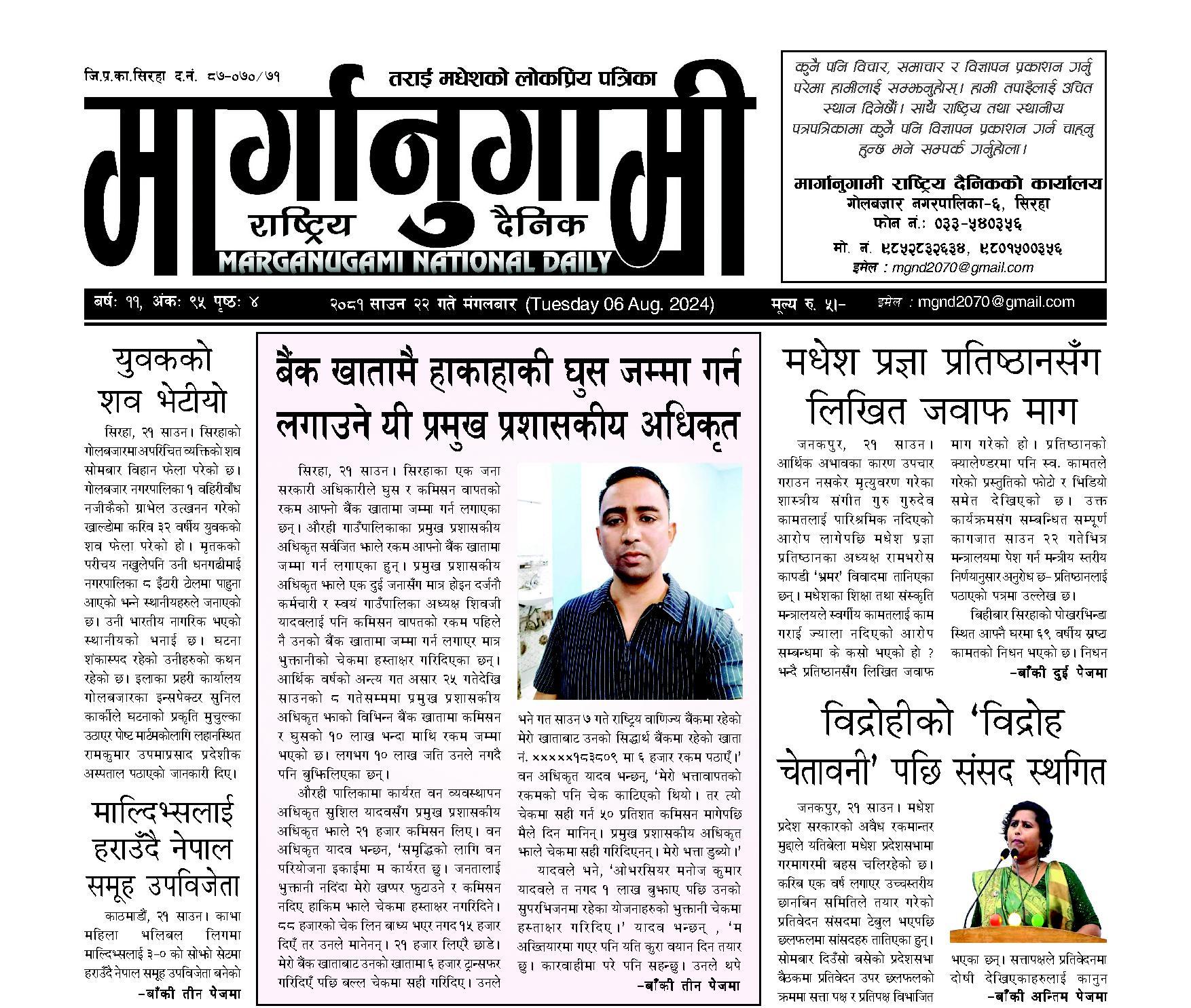 २०८१ साउन २२ गते मंगलबार (Tuesday 06 Aug. 2024)