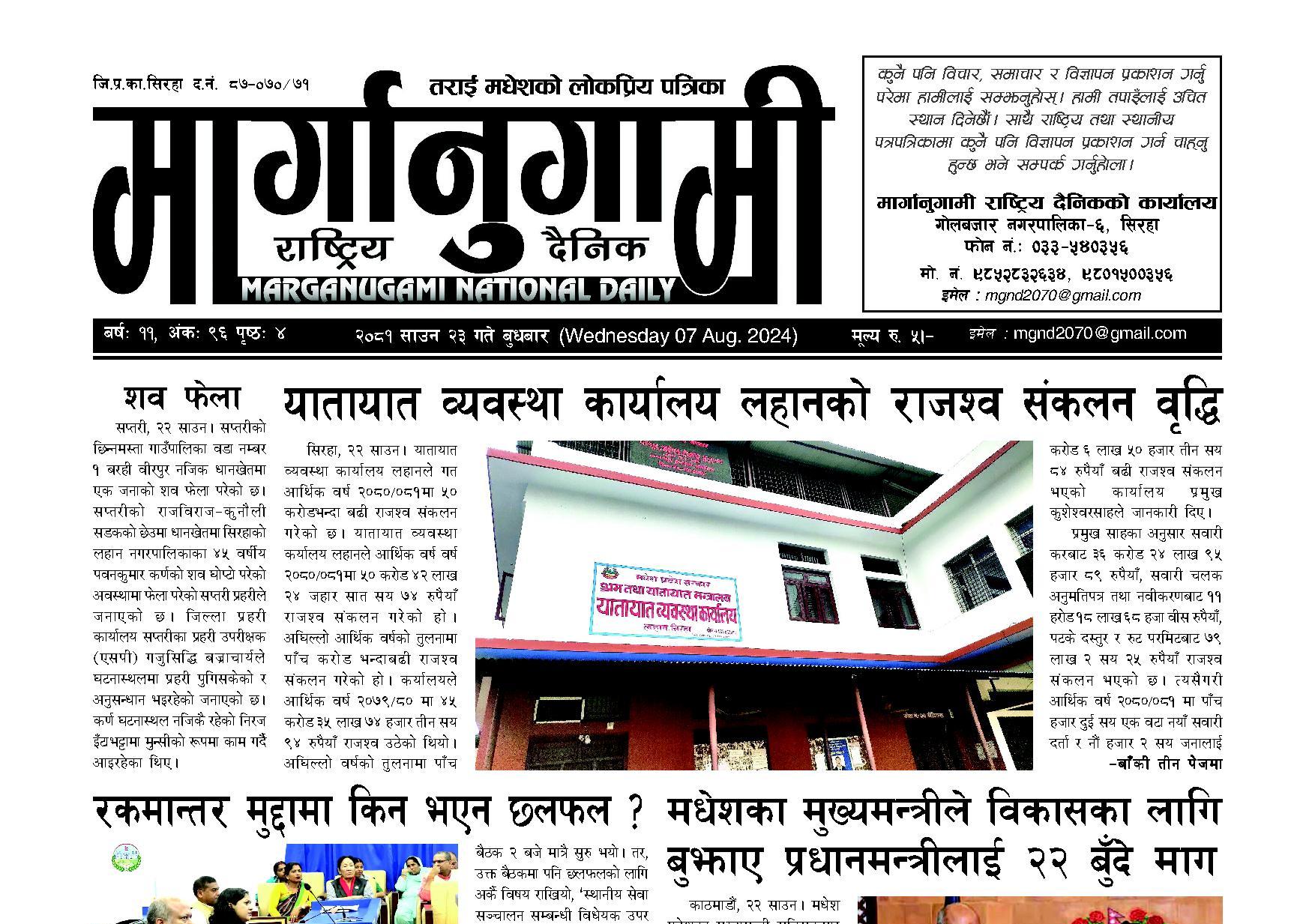 २०८१ साउन २३ गते बुधबार (Wednesday 07 Aug. 2024)