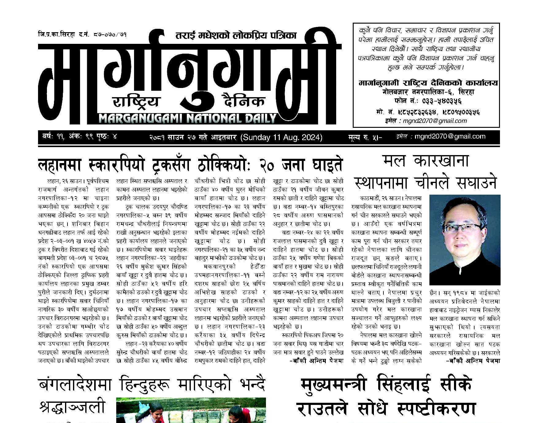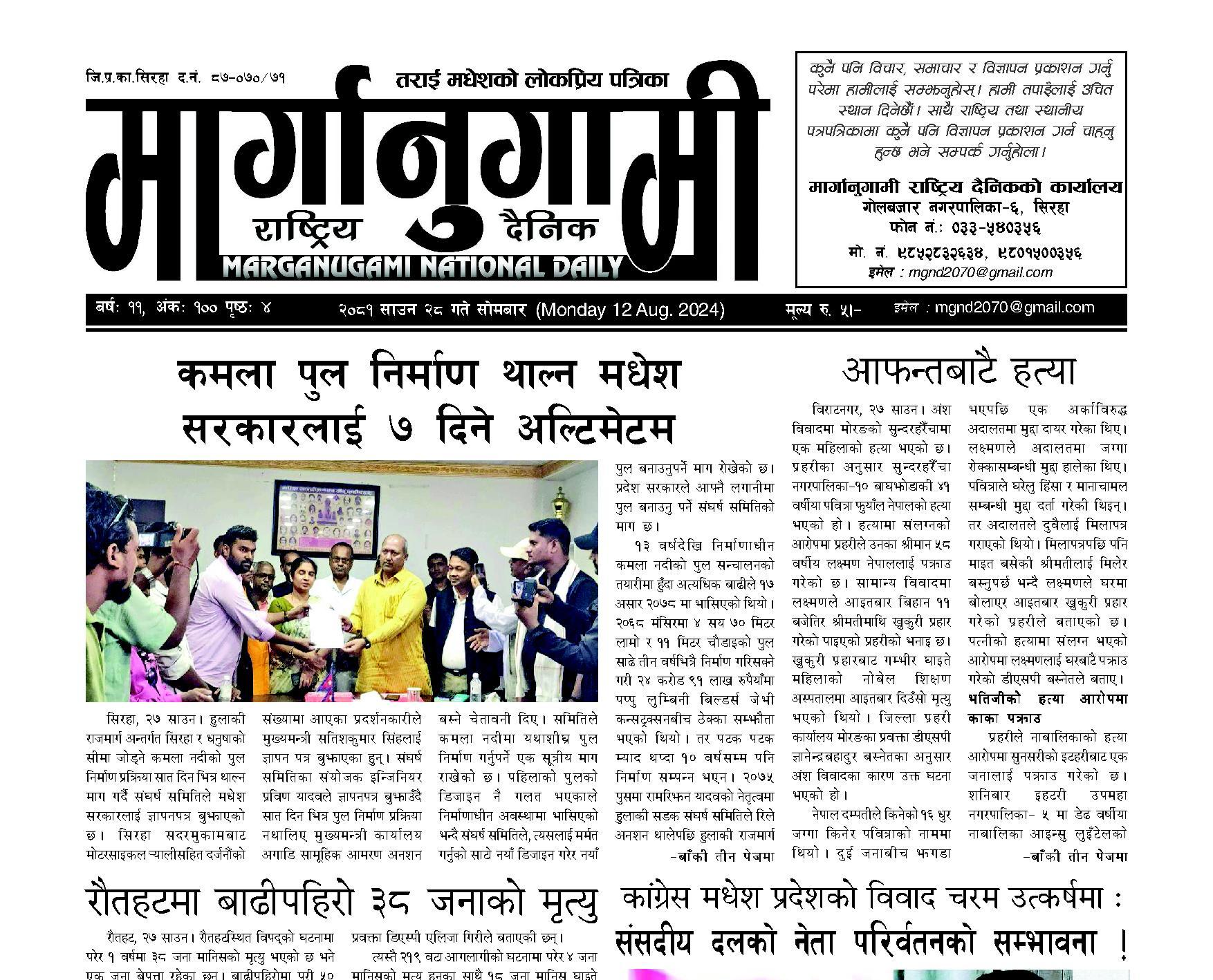 २०८१ साउन २८ गते सोमबार (Monday 12 Aug. 2024)