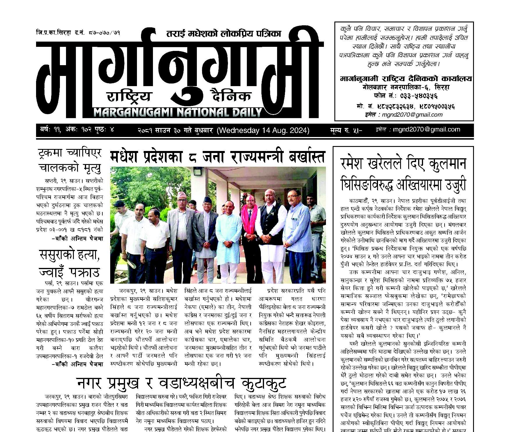 २०८१ साउन ३० गते बुधबार (Wednesday 14 Aug. 2024)