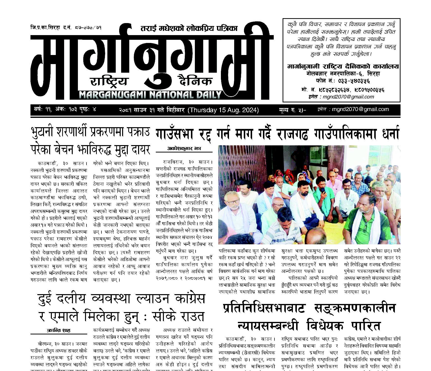 २०८१ साउन ३१ गते विहीबार (Thursday 15 Aug. 2024)
