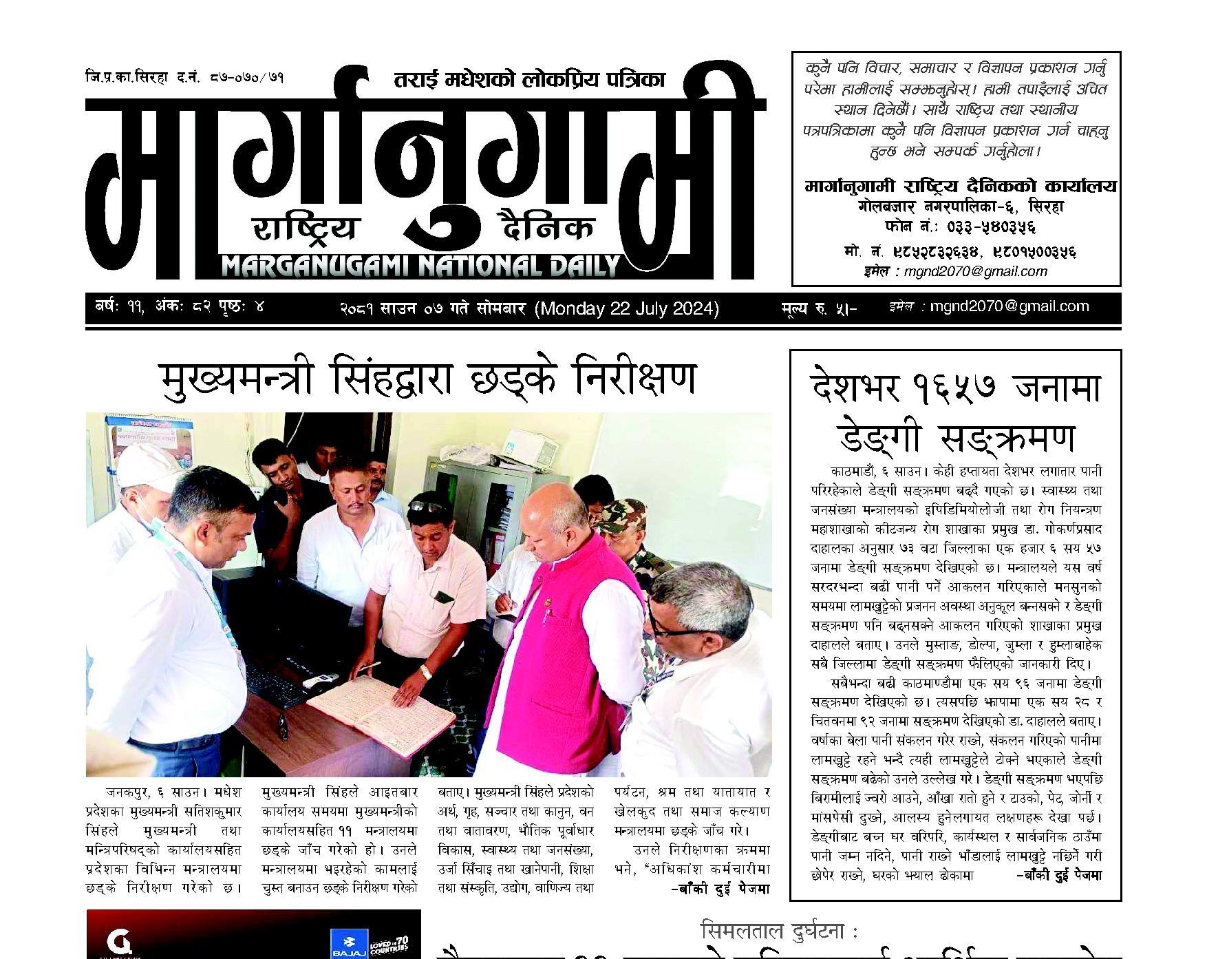 २०८१ साउन ०७ गते सोमबार (Monday 22 July 2024)