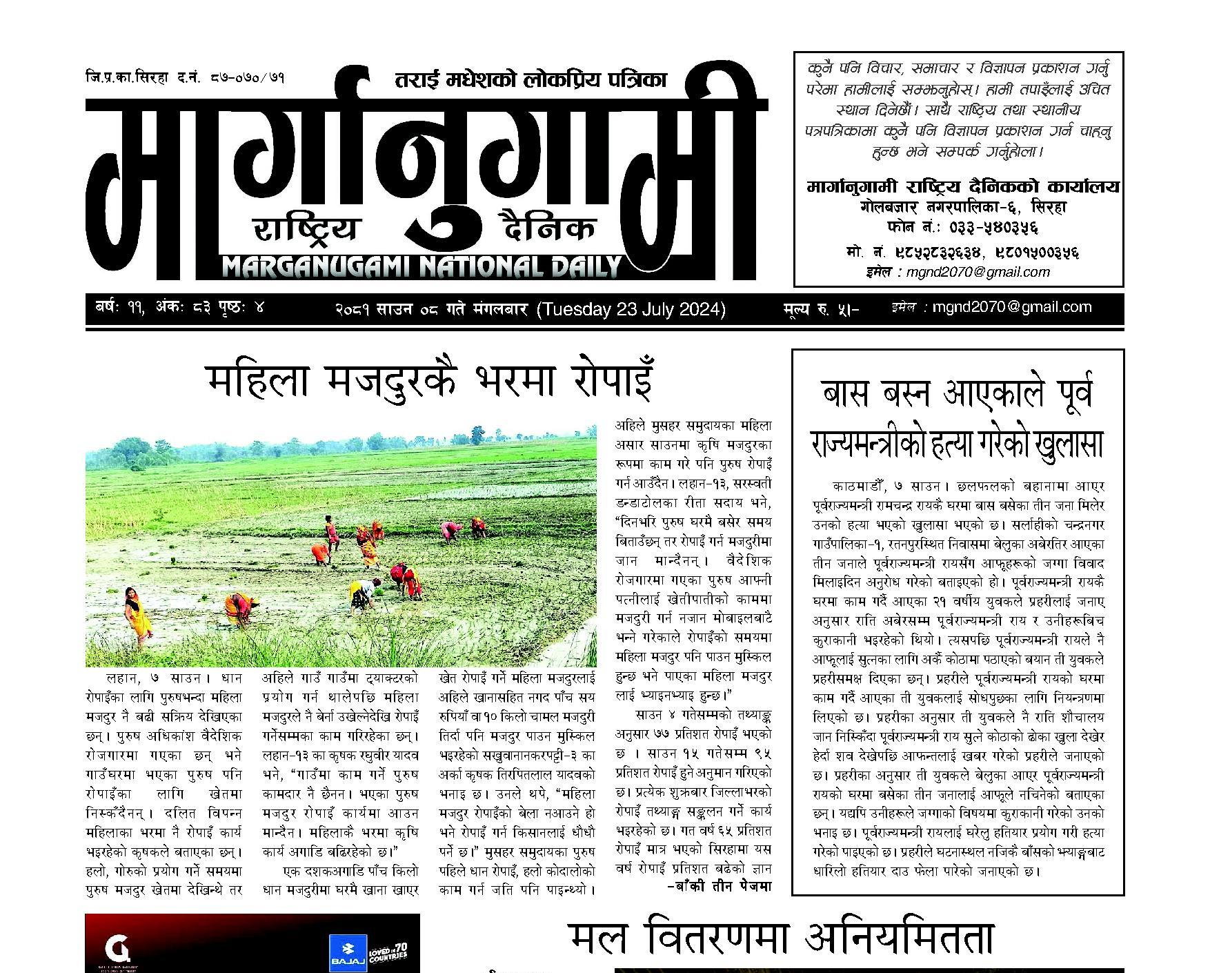 २०८१ साउन ०८ गते मंगलबार (Tuesday 23 July 2024)