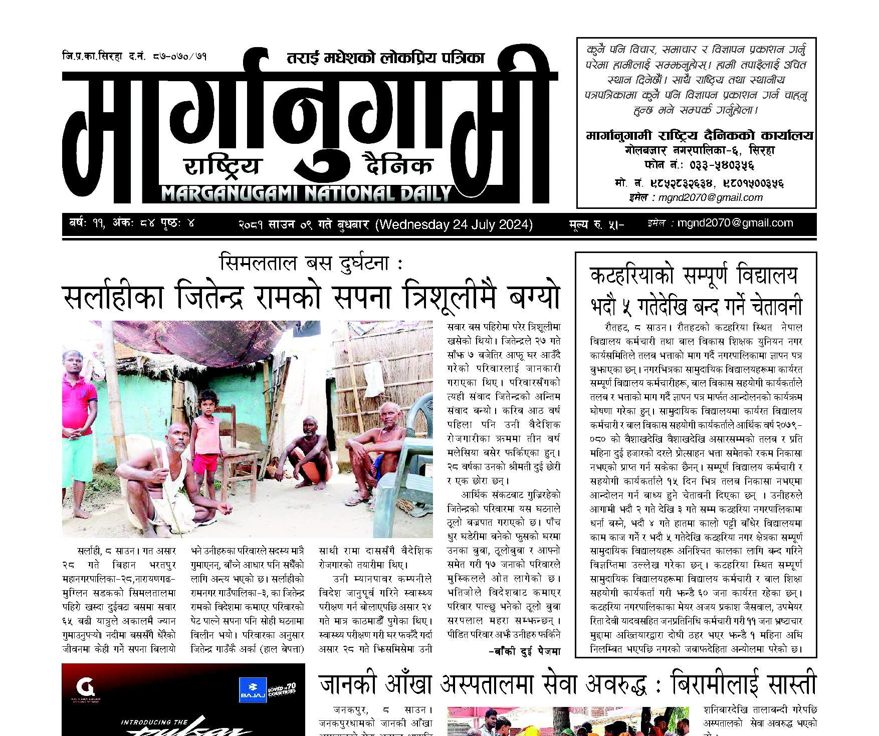 २०८१ साउन ०९ गते बुधबार (Wednesday 24 July 2024)