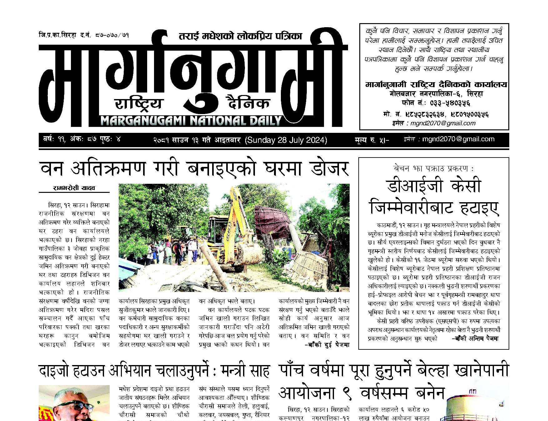 २०८१ साउन १३ गते आइतबार (Sunday 28 July 2024)