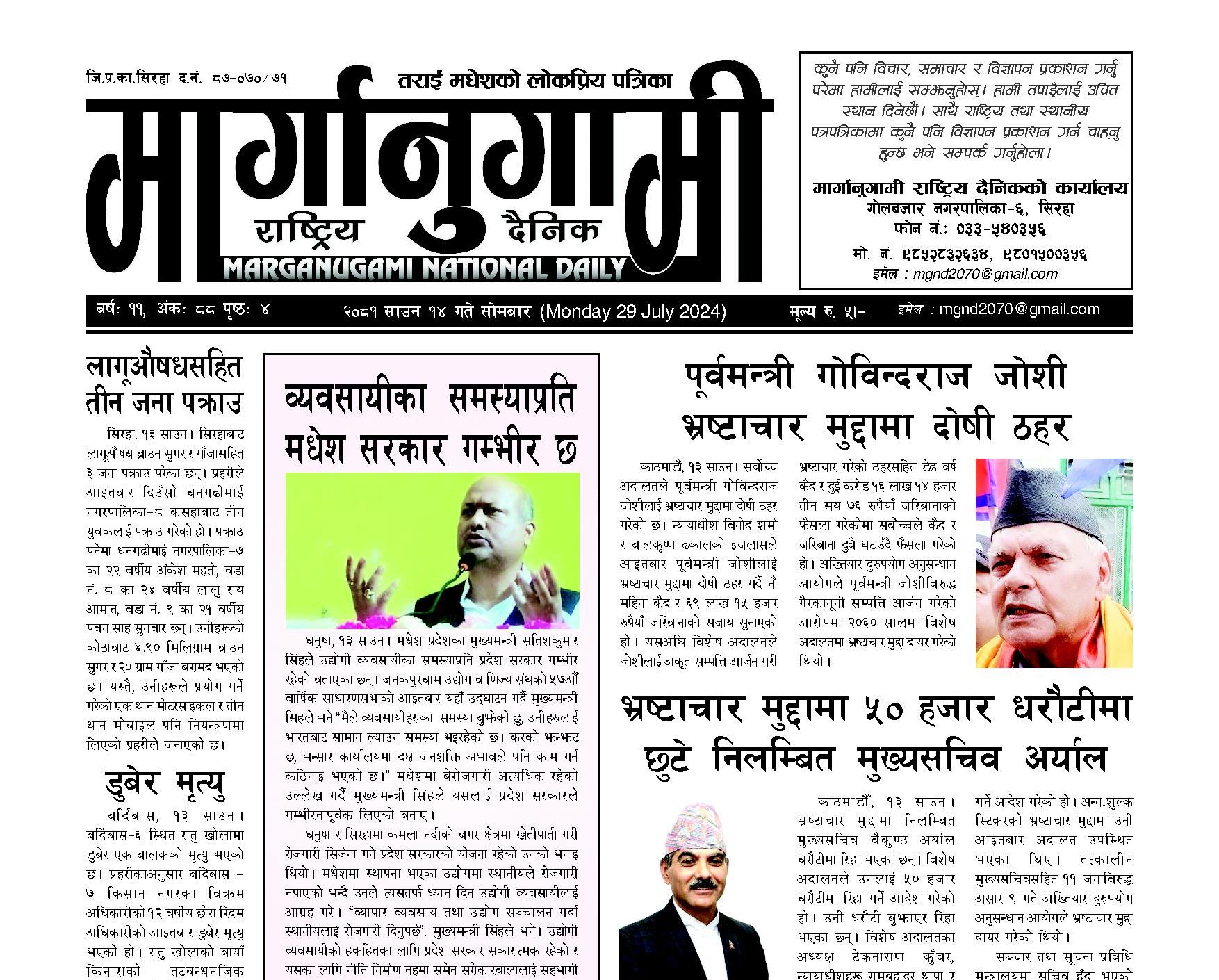 २०८१ साउन १४ गते सोमबार (Monday 29 July 2024)