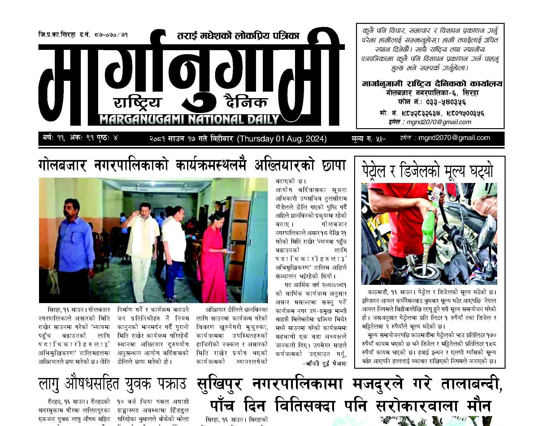 २०८१ साउन १७ गते विहीबार (Thursday 01 Aug. 2024)