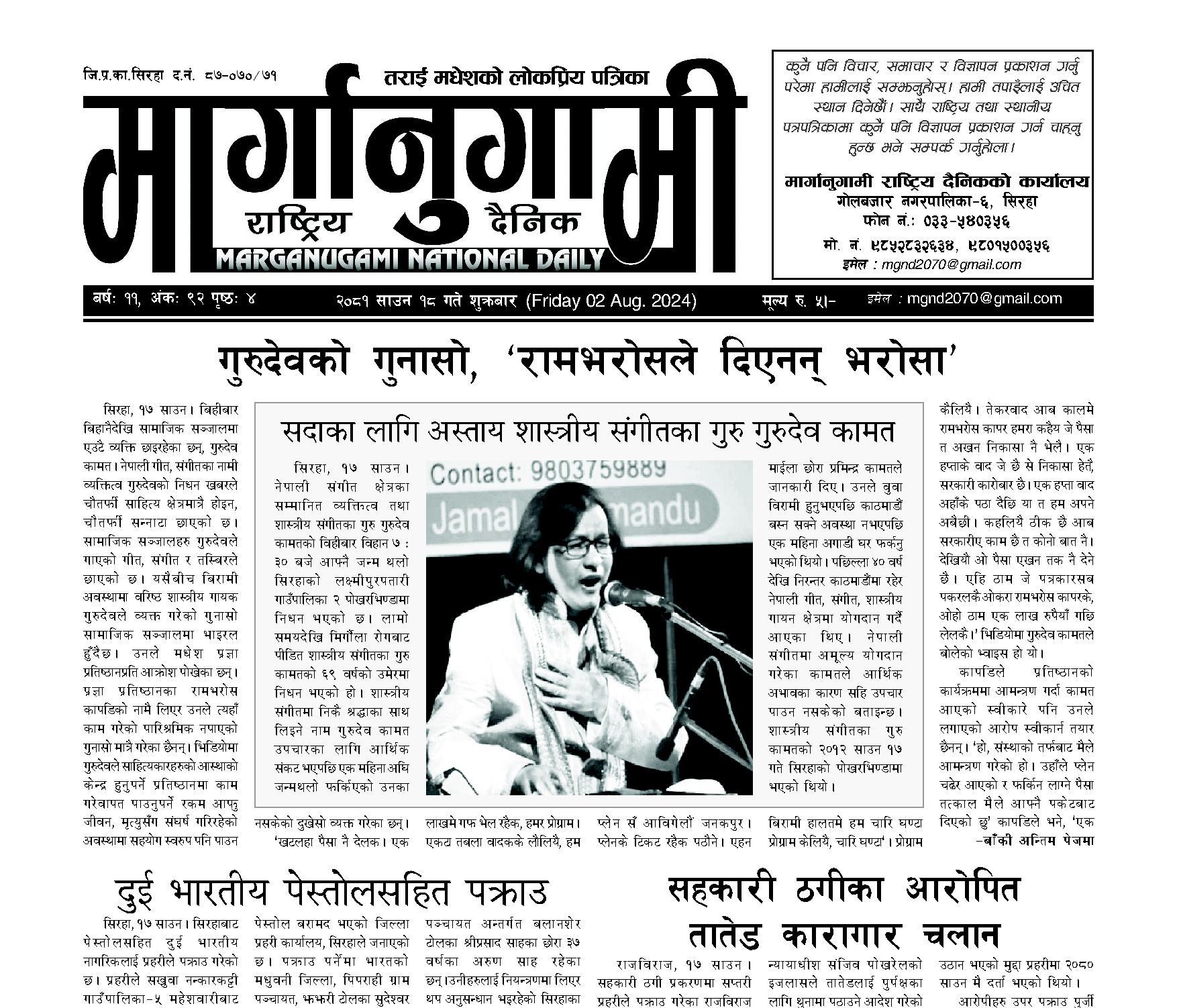 २०८१ साउन १८ गते शुक्रबार (Friday 02 Aug. 2024)