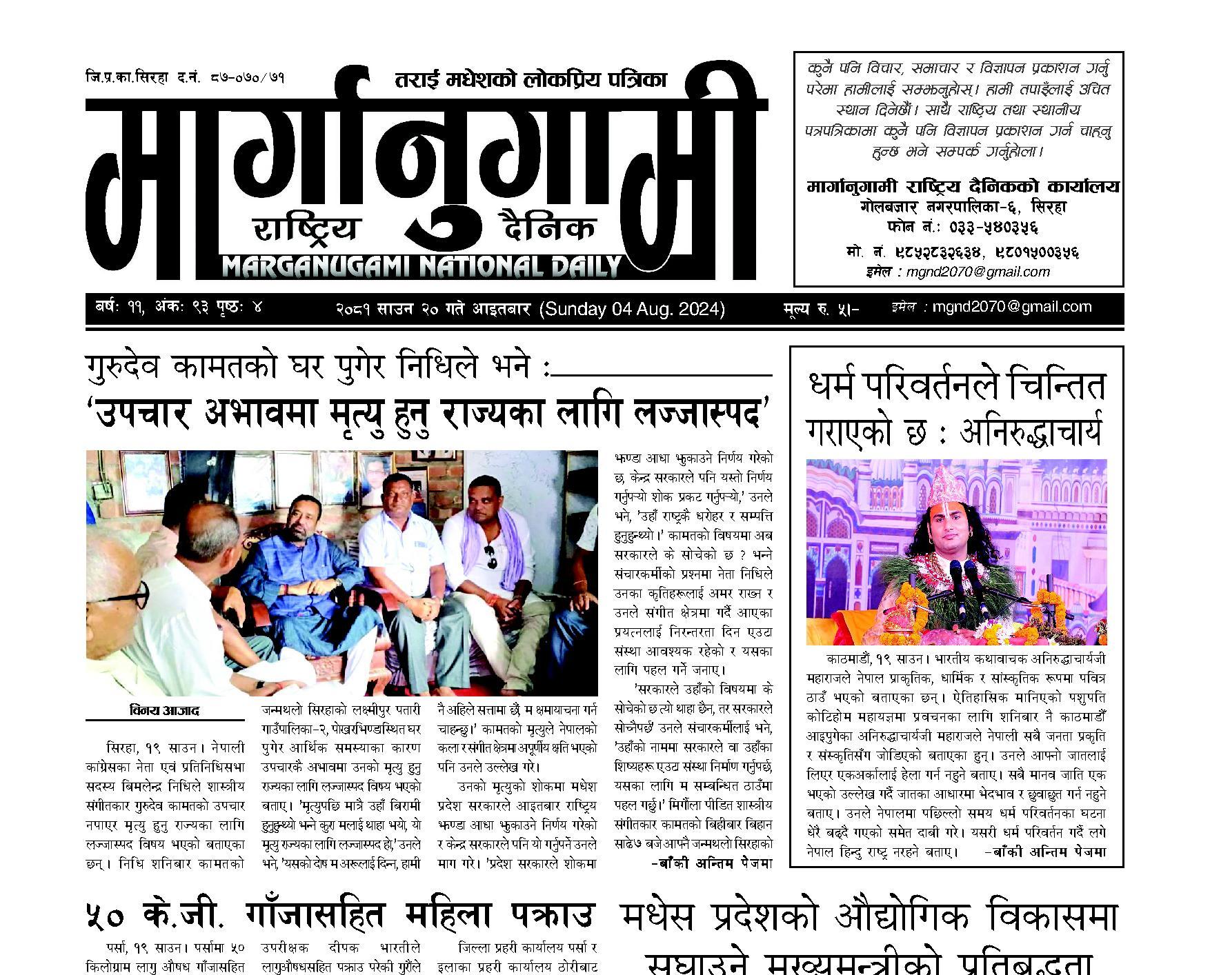 २०८१ साउन २० गते आइतबार (Sunday 04 Aug. 2024)
