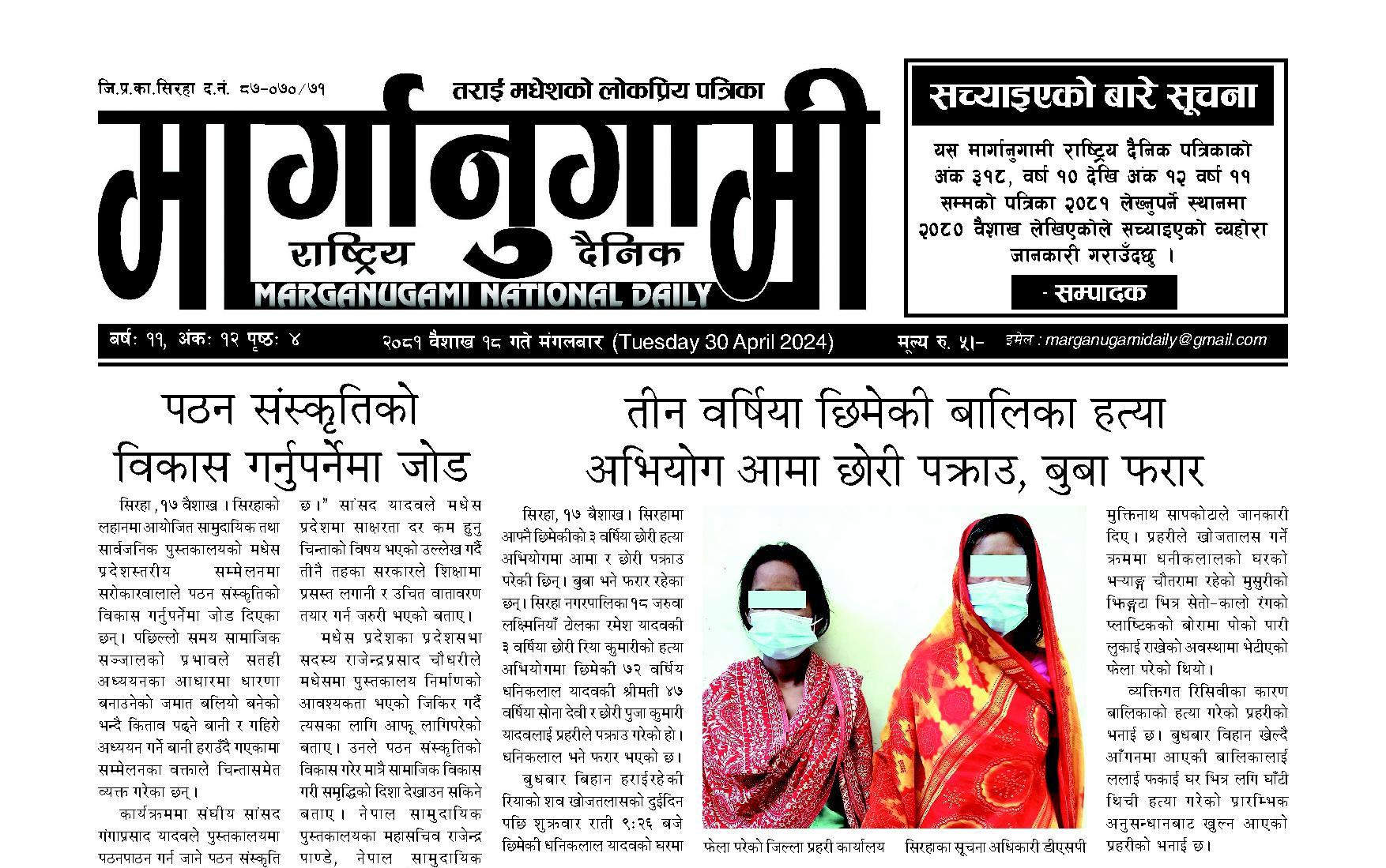 २०८१ वैशाख १८ गते मंगलबार (Tuesday 30 April 2024)
