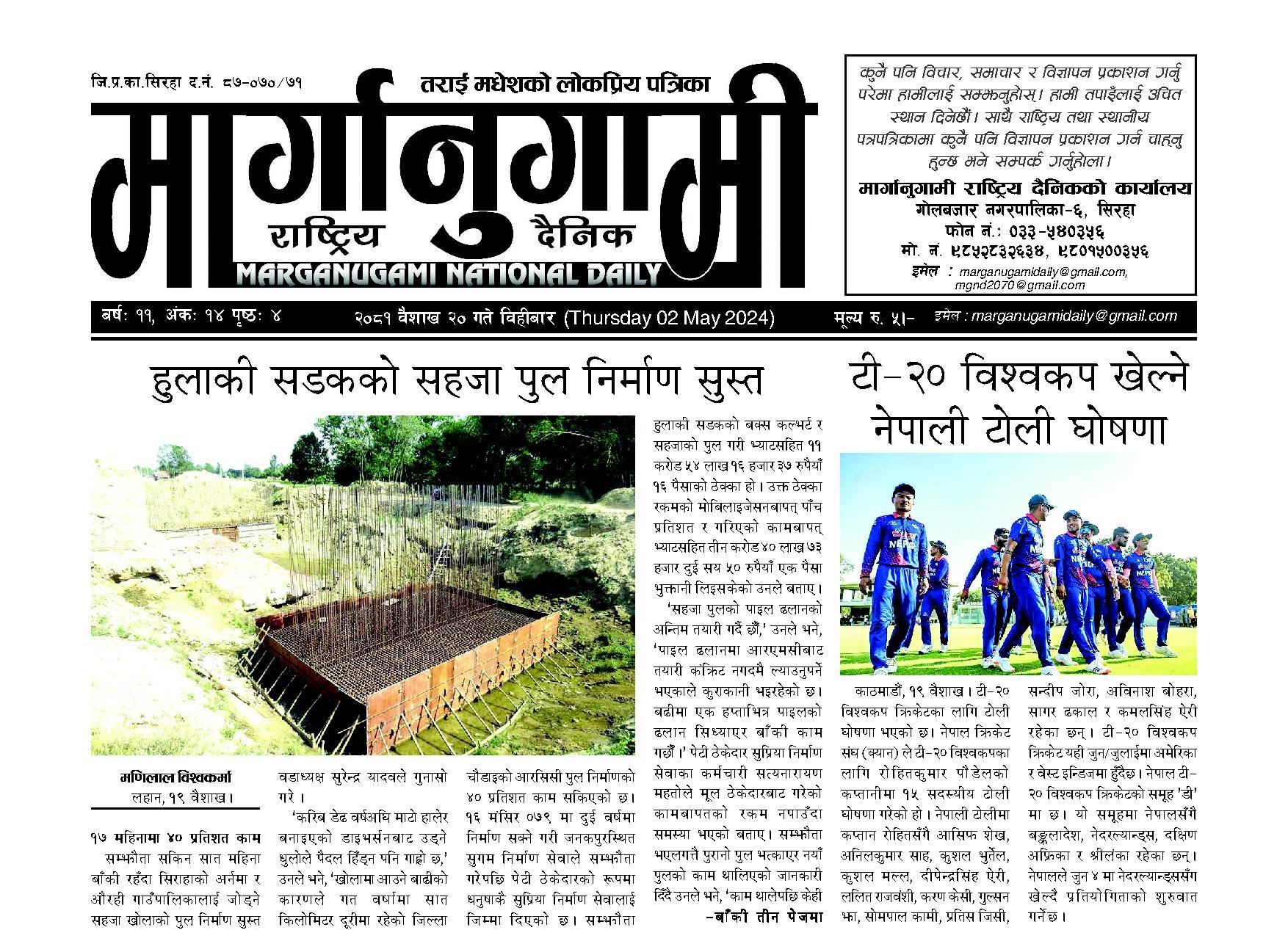 २०८१ वैशाख २० गते विहीबार (Thursday 2 May 2024)